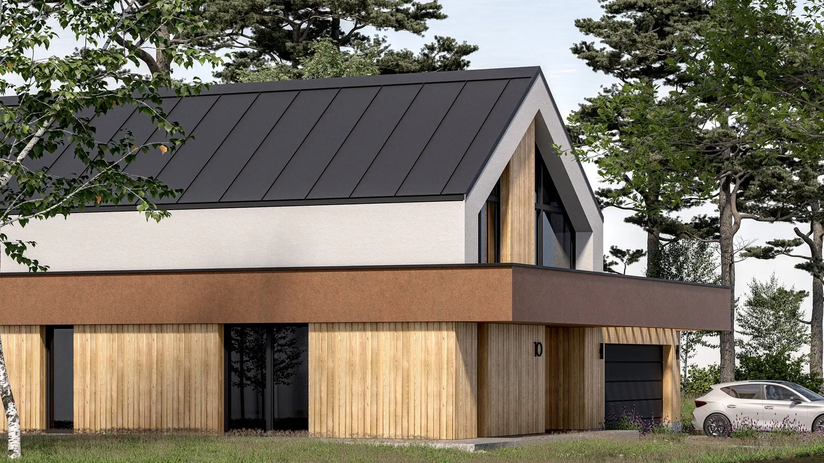 Drewno od lat pozostaje jednym z najchętniej wybieranych materiałów na elewacje. Każda deska jest niepowtarzalna – ma własny rysunek słojów i odcieni, co sprawia, że fasada nabiera unikalnego charakteru. Sprawdza się zarówno w domach tradycyjnych, jak i w nowoczesnych projektach – jako dominujący materiał albo jako akcent łączony z tynkiem, betonem czy szkłem.