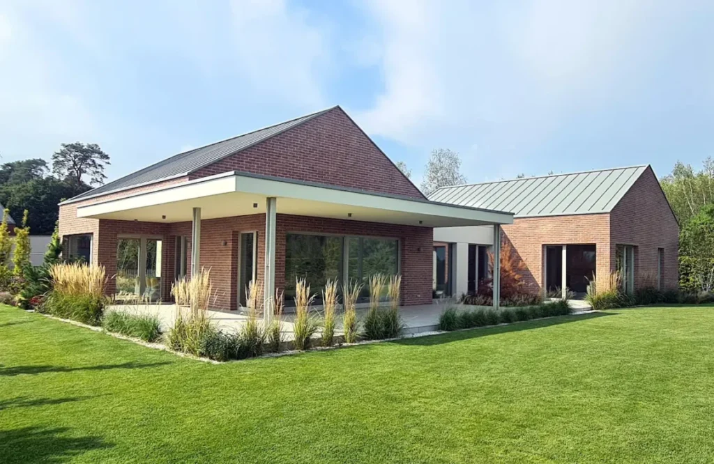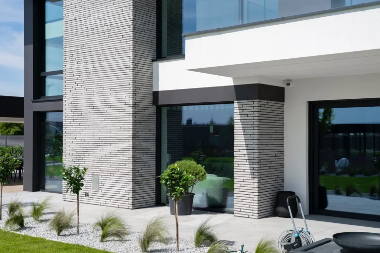 prestiżowa cegła: zastosowanie cegły licowej „Long” ręcznie formowanej Milke wprowadza wydłużony, nowoczesny format tradycyjnego materiału, nadając elewacji unikalny i luksusowy charakter.
