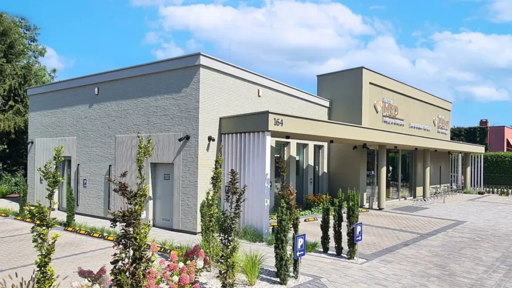 - Nowoczesne oświetlenie LED oraz świetlne pylony reklamowe Redeye – zapewniające doskonałą widoczność i estetykę nocą.
