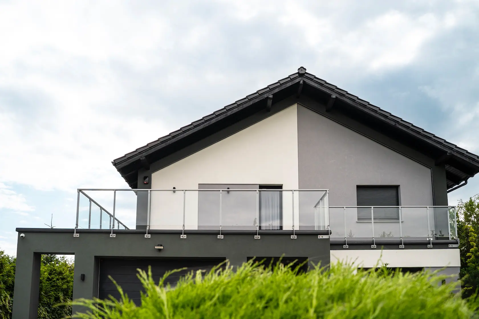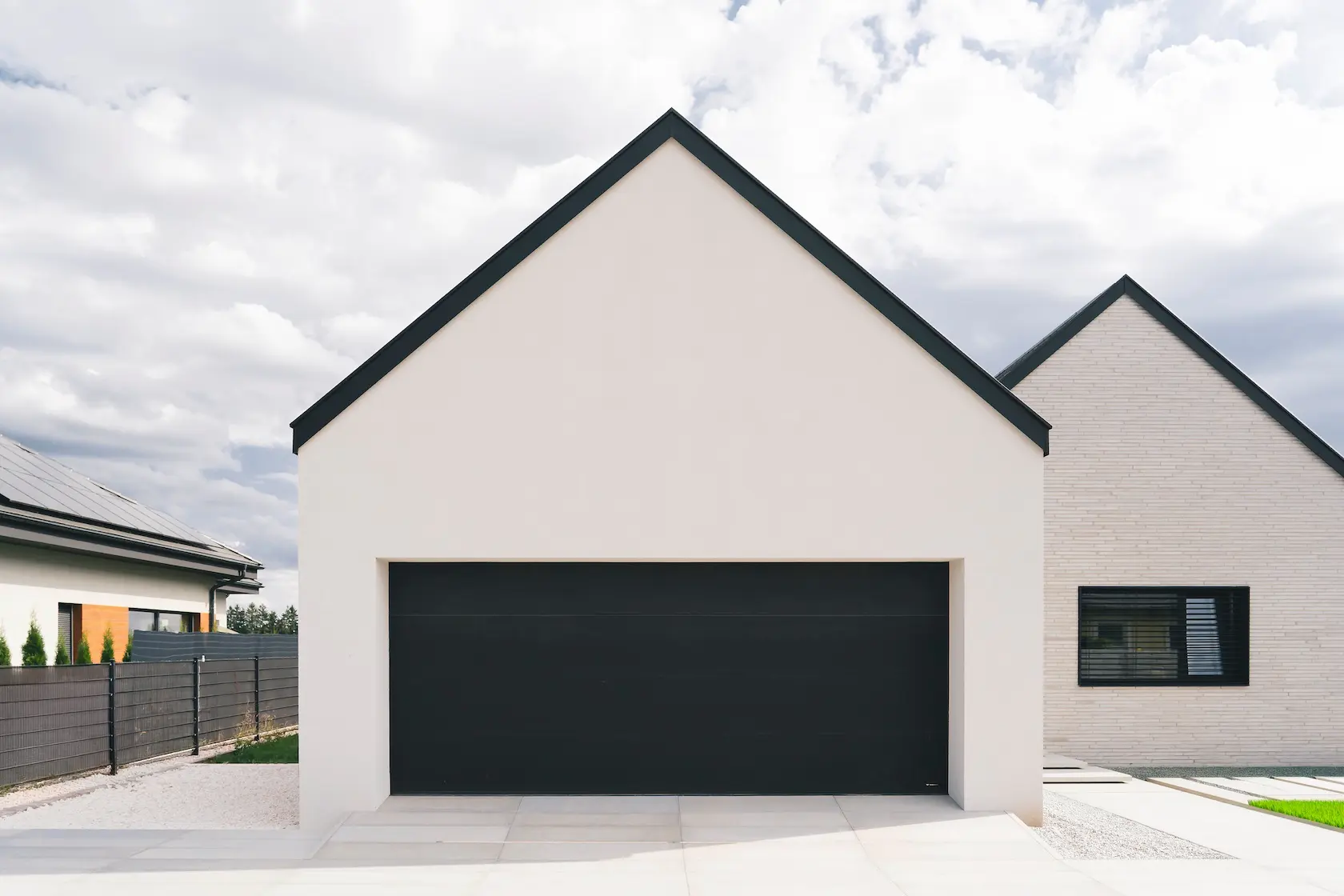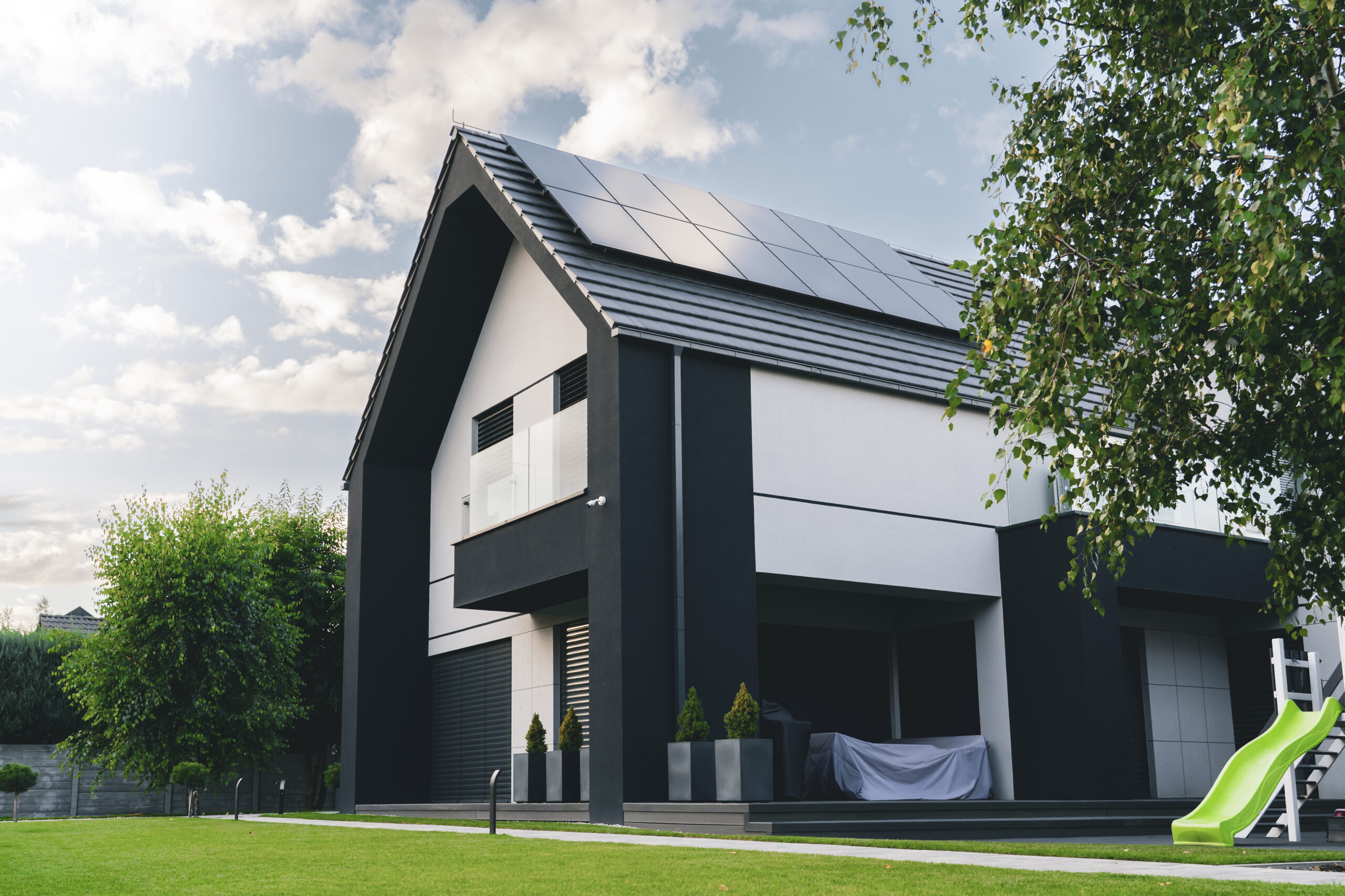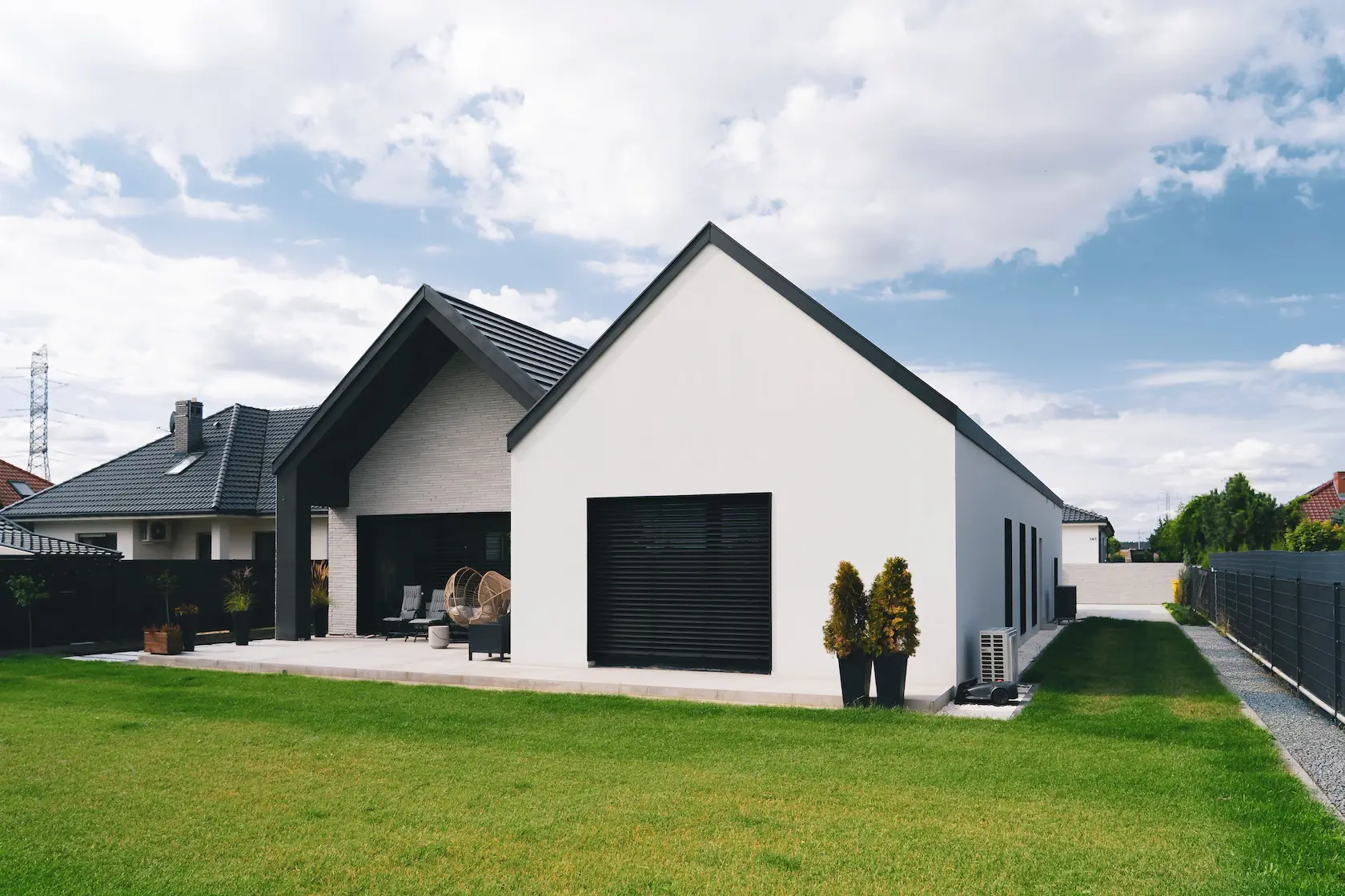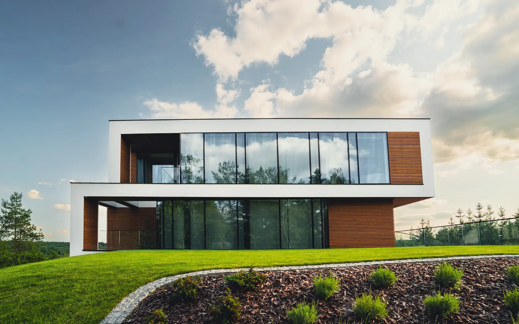 nowoczesna fasada wentylowana: wybrane partie elewacji wykonano w technologii wentylowanej z użyciem płyt włókno-cementowych Equitone. To rozwiązanie zapewnia wyjątkową trwałość, odporność na warunki atmosferyczne i nowoczesny, minimalistyczny wygląd.