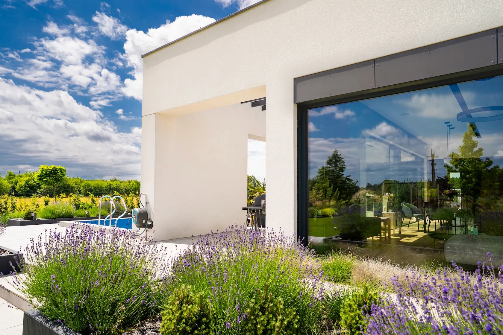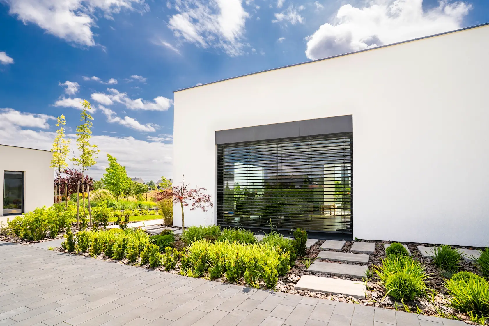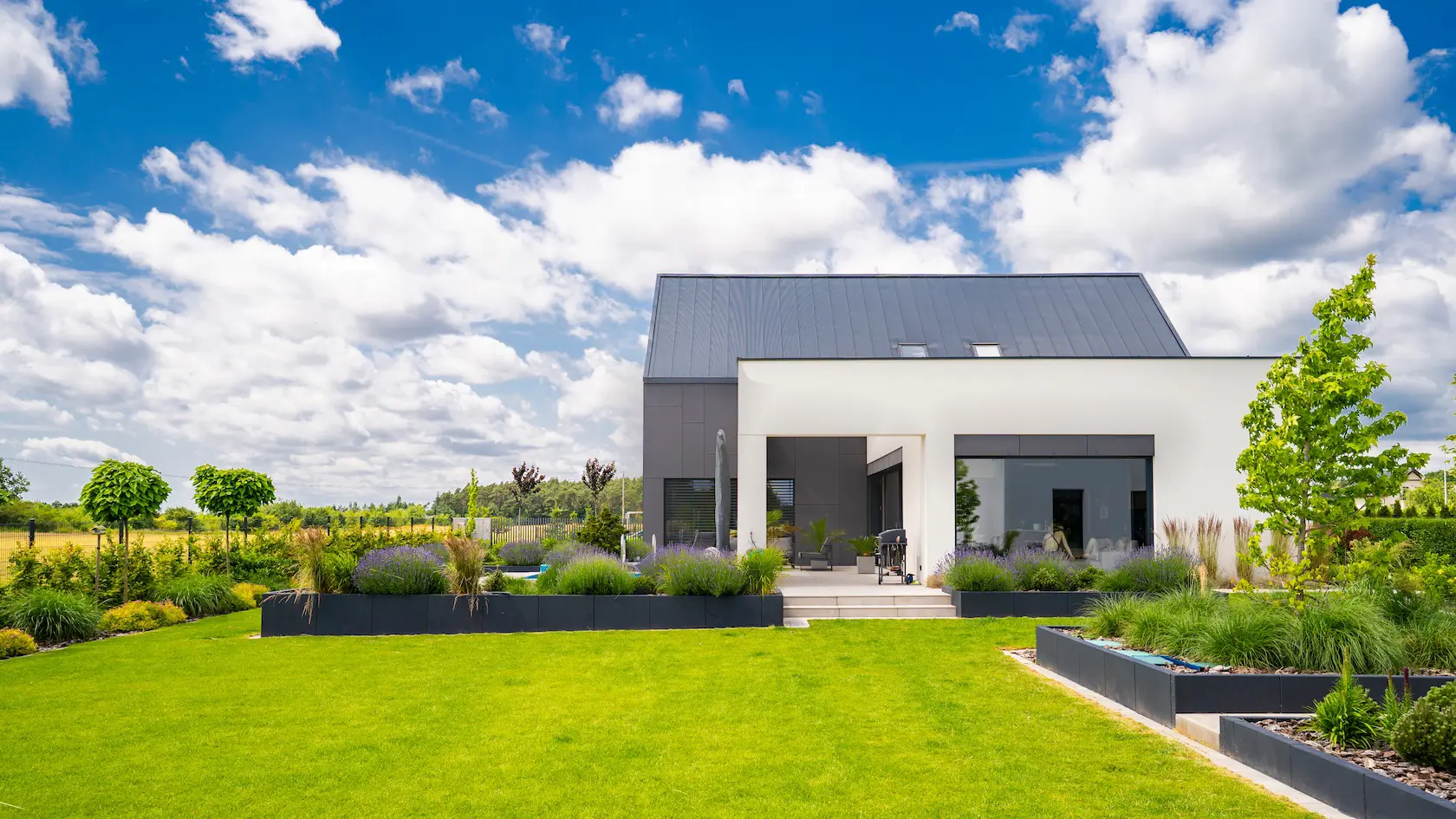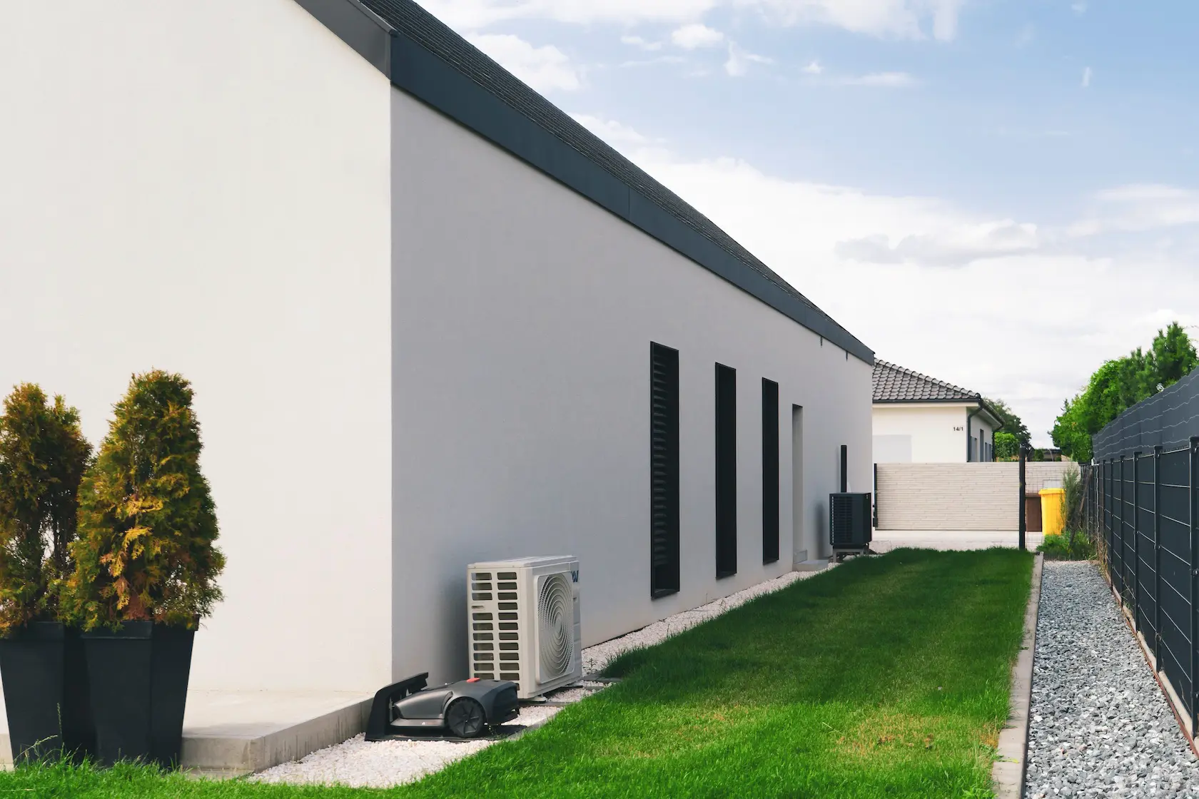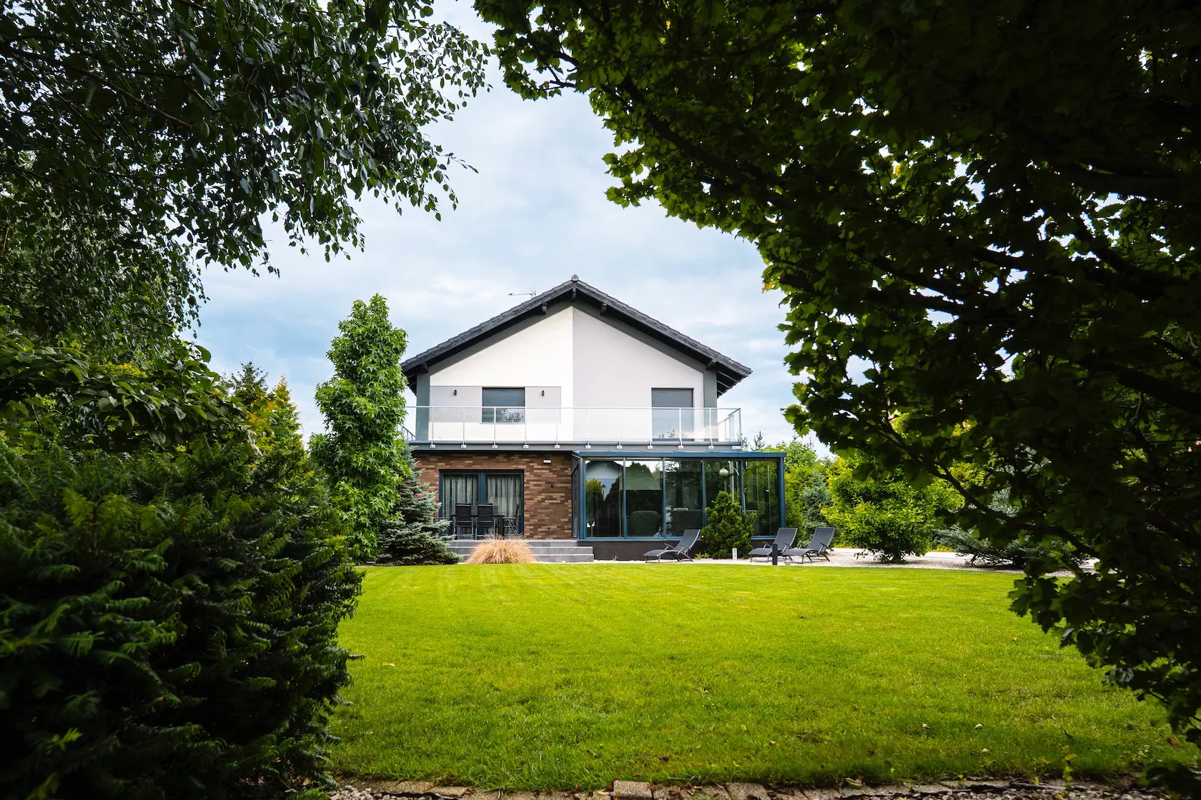 nowoczesna fasada wentylowana: wybrane partie elewacji wykonano w technologii wentylowanej z użyciem płyt włókno-cementowych Equitone. To rozwiązanie zapewnia wyjątkową trwałość, odporność na warunki atmosferyczne i nowoczesny, minimalistyczny wygląd.