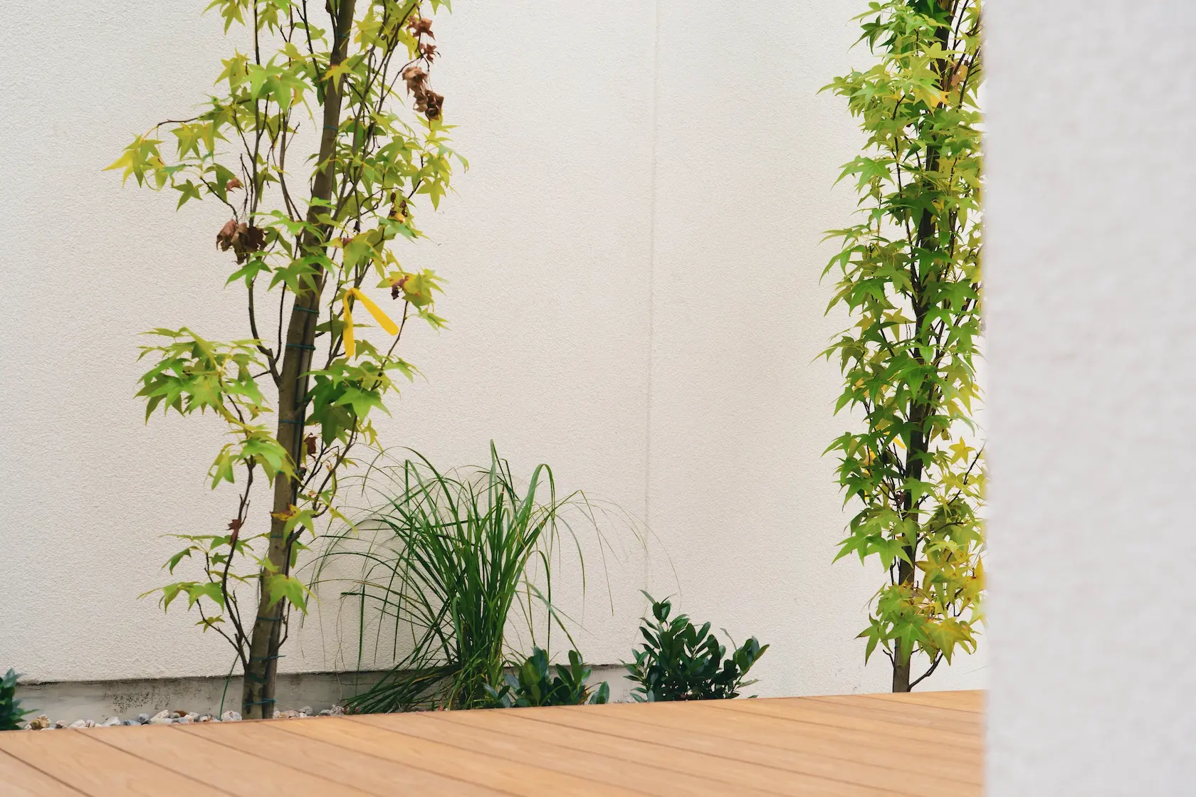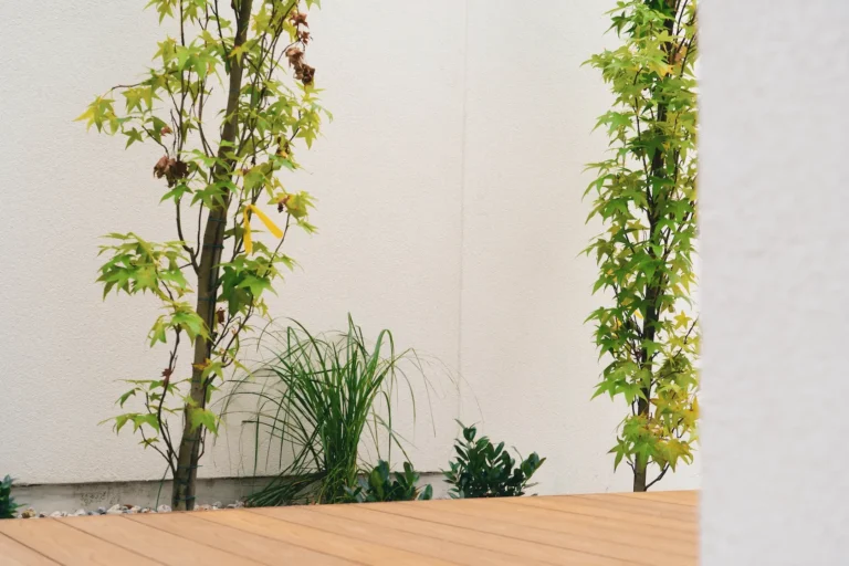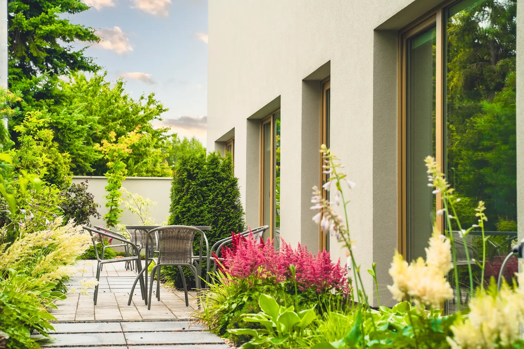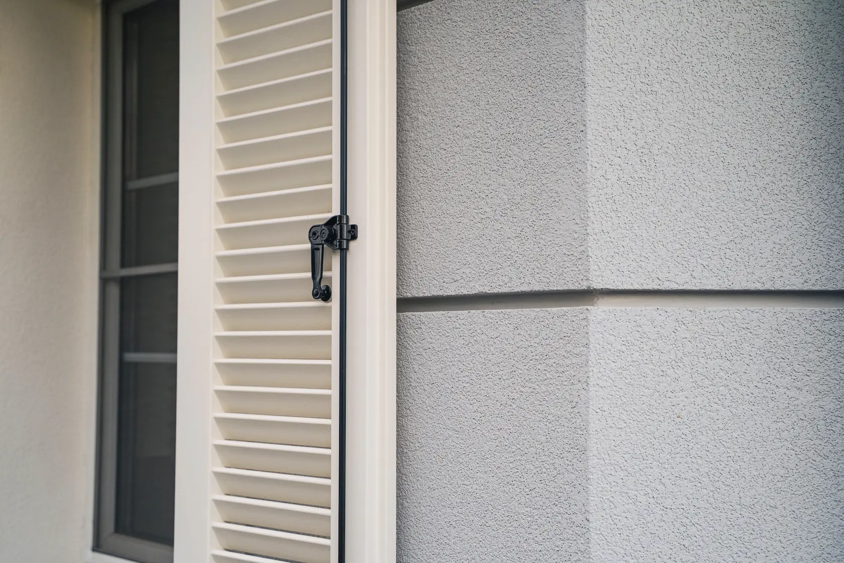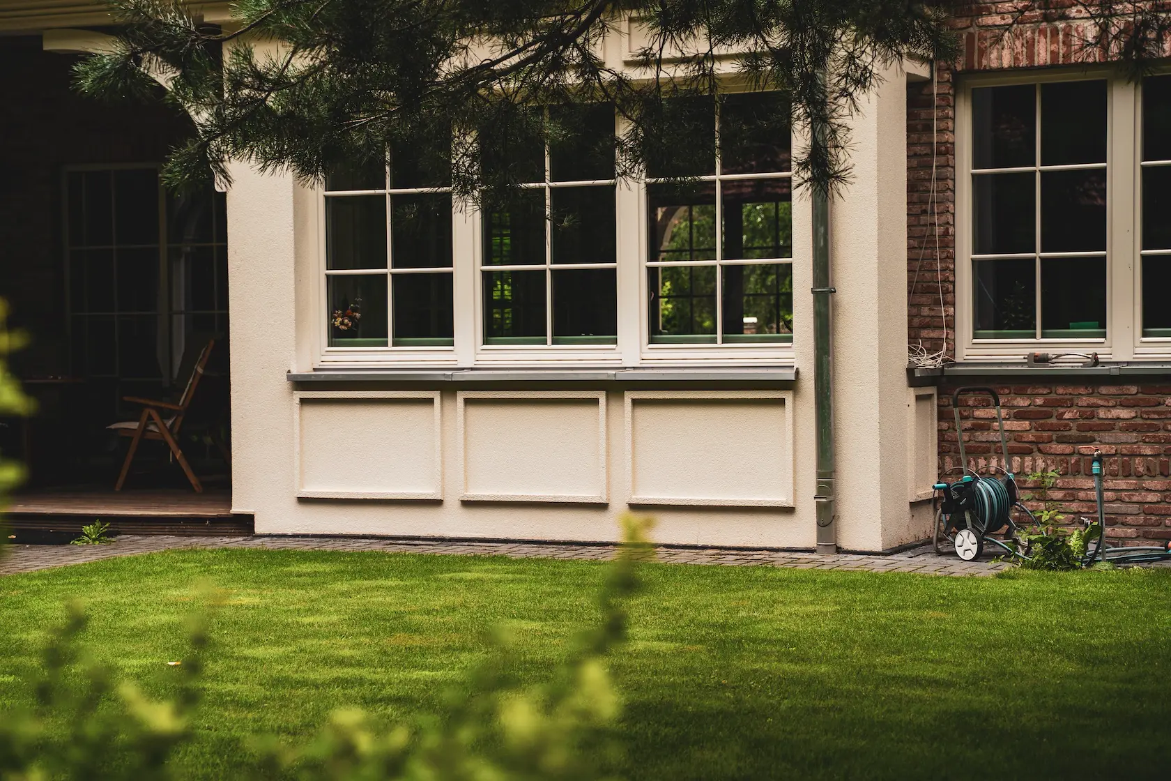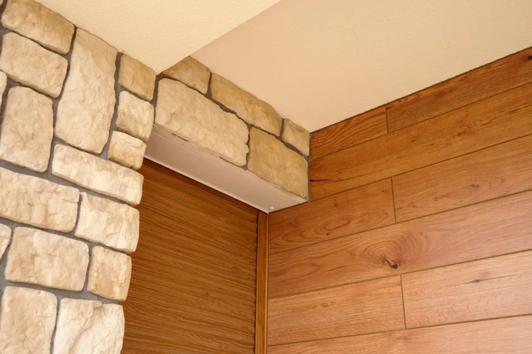 ościeża okienne premium: zastosowanie drewna egzotycznego do wykończenia ościeży okiennych wprowadza luksusowy i trwały akcent, kontrastujący z gładką powierzchnią tynku,