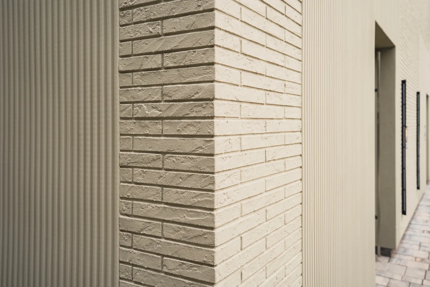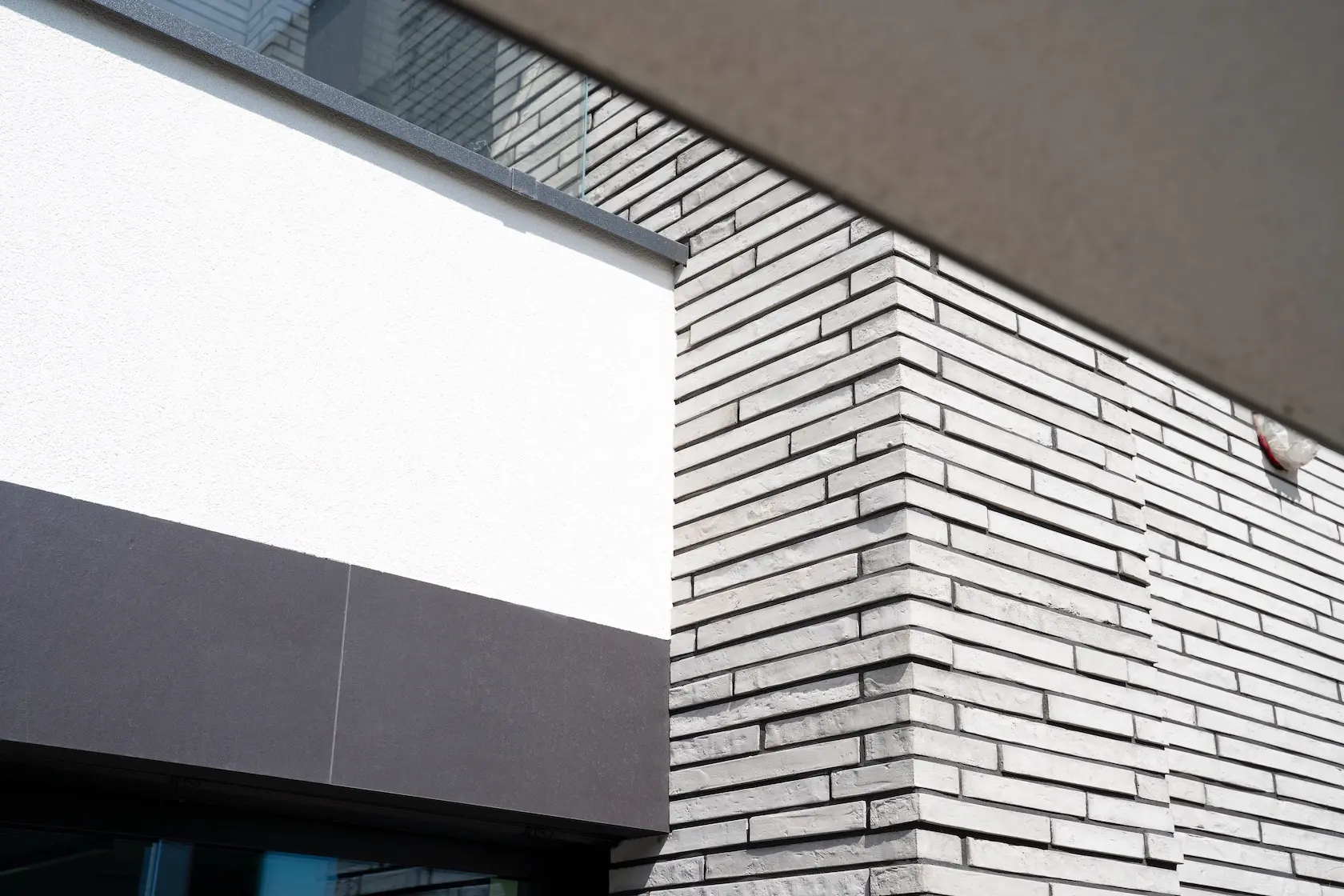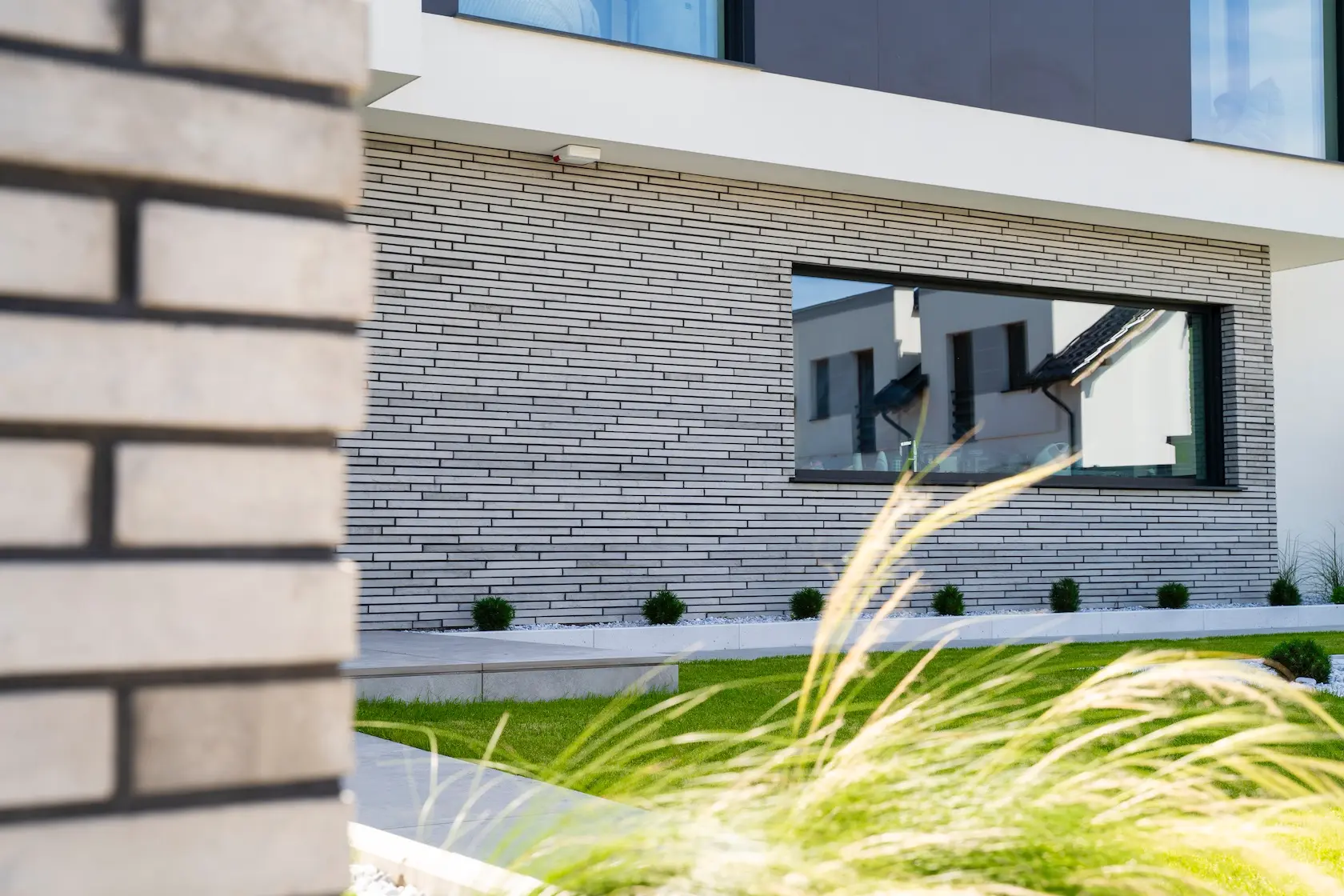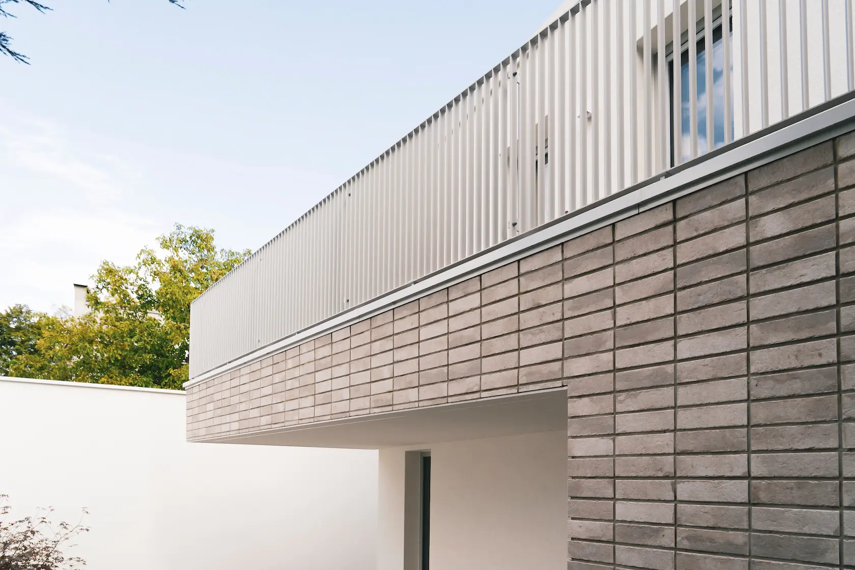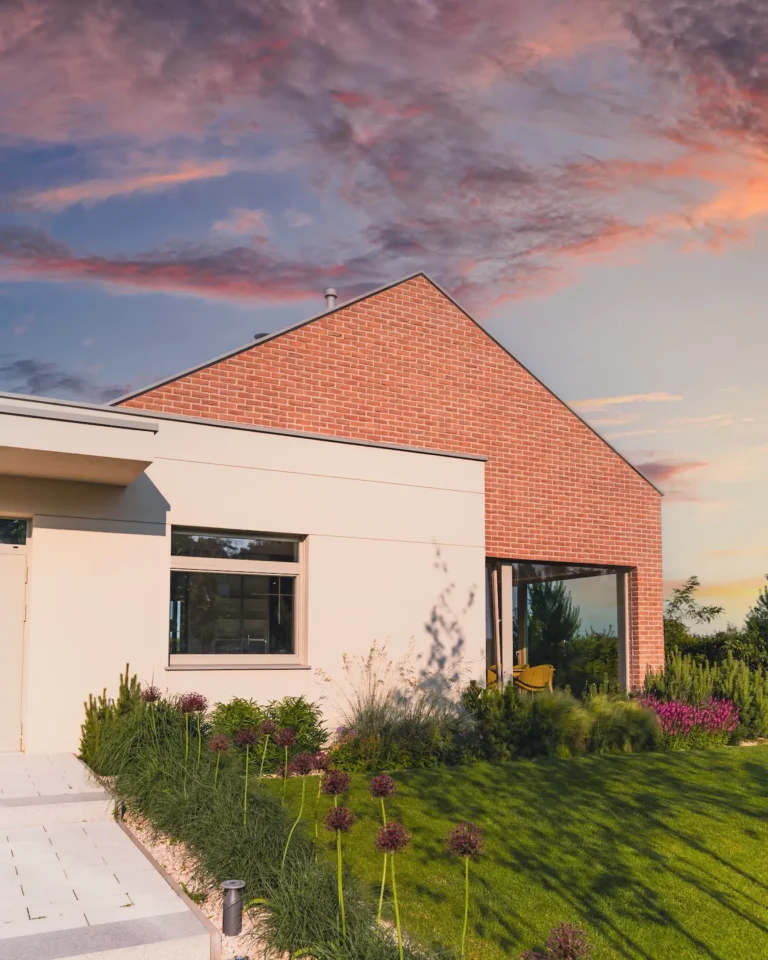 cegła prestiżowa: wybrane płaszczyzny wykończono cegłą licową ręcznie formowaną Milke, cenioną za unikalny, nieregularny charakter, trwałość i luksusowy wygląd, który nadaje elewacji tradycyjnego, a zarazem wyrafinowanego stylu.