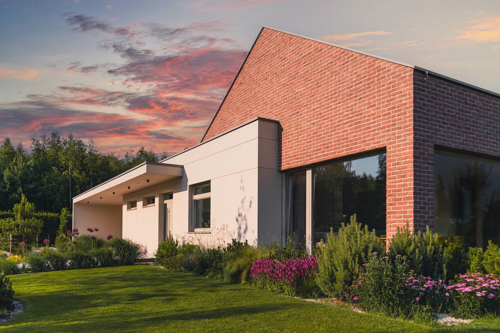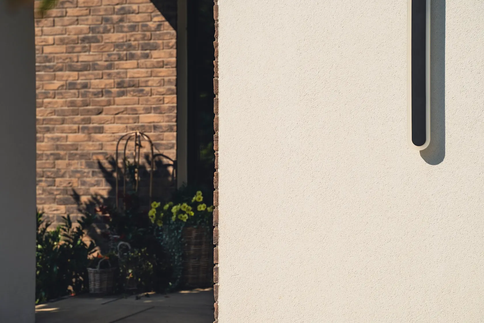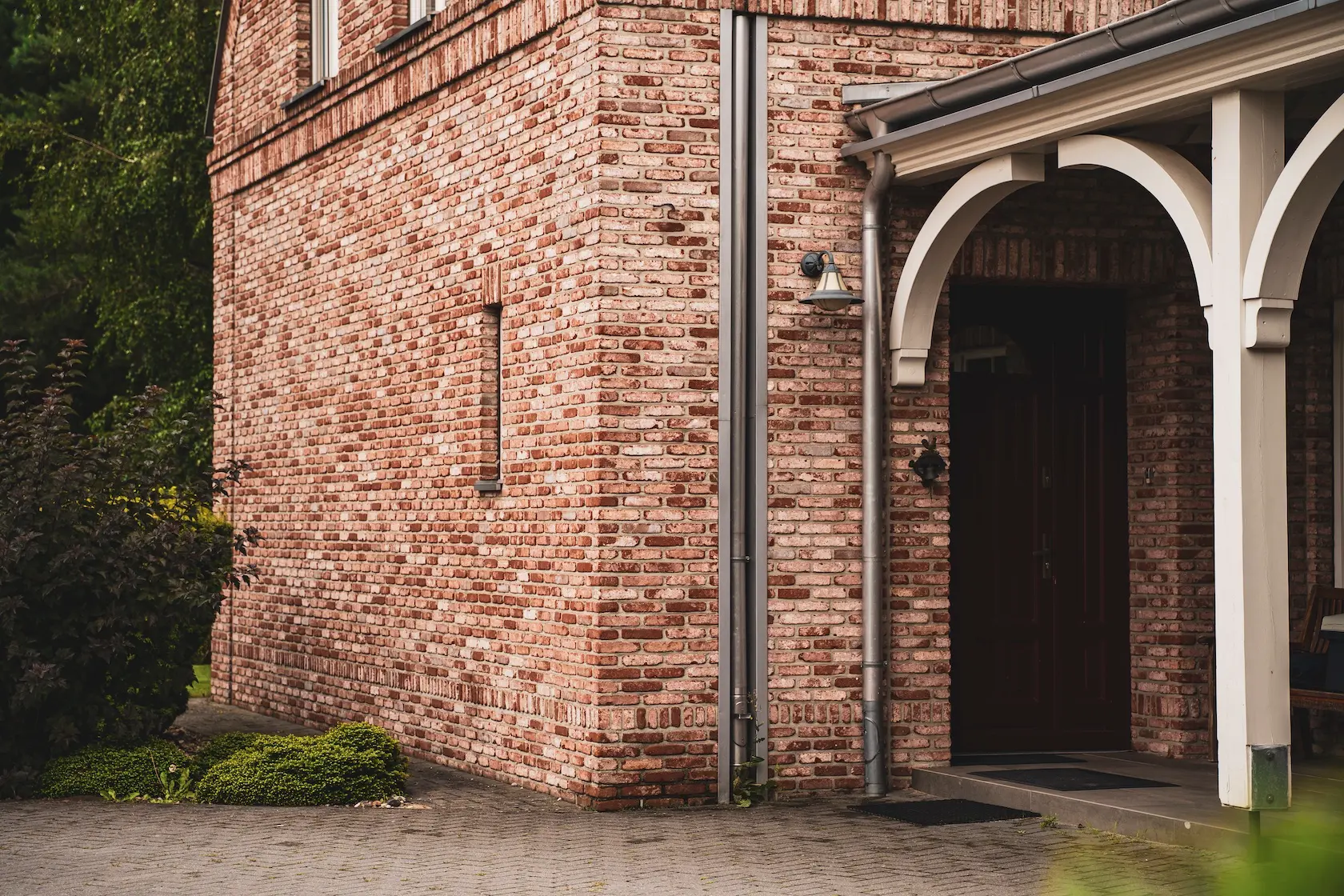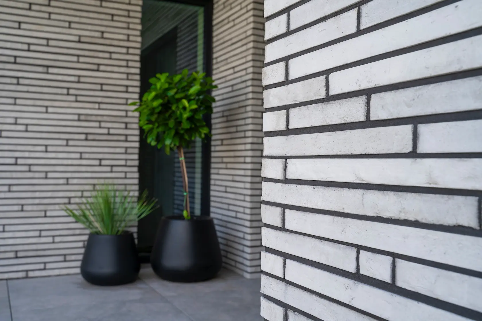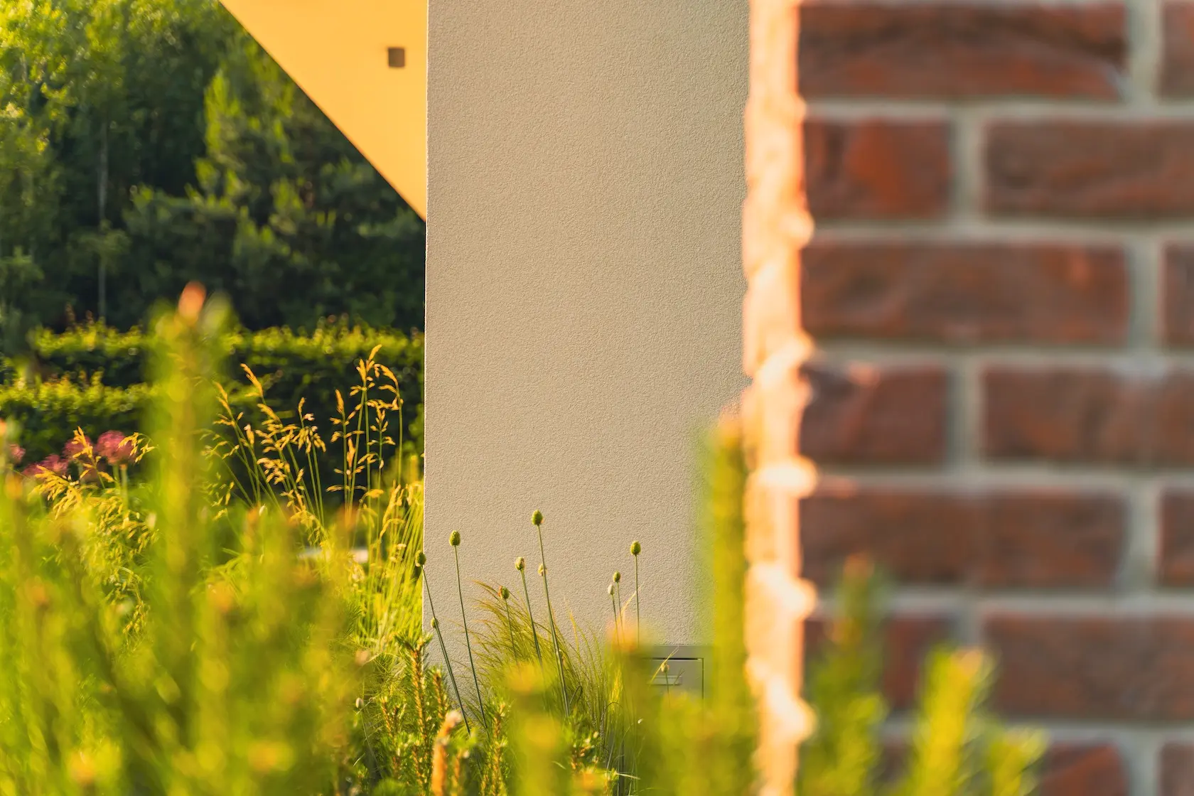 cegła prestiżowa: wybrane płaszczyzny wykończono cegłą licową ręcznie formowaną Milke, cenioną za unikalny, nieregularny charakter, trwałość i luksusowy wygląd, który nadaje elewacji tradycyjnego, a zarazem wyrafinowanego stylu.