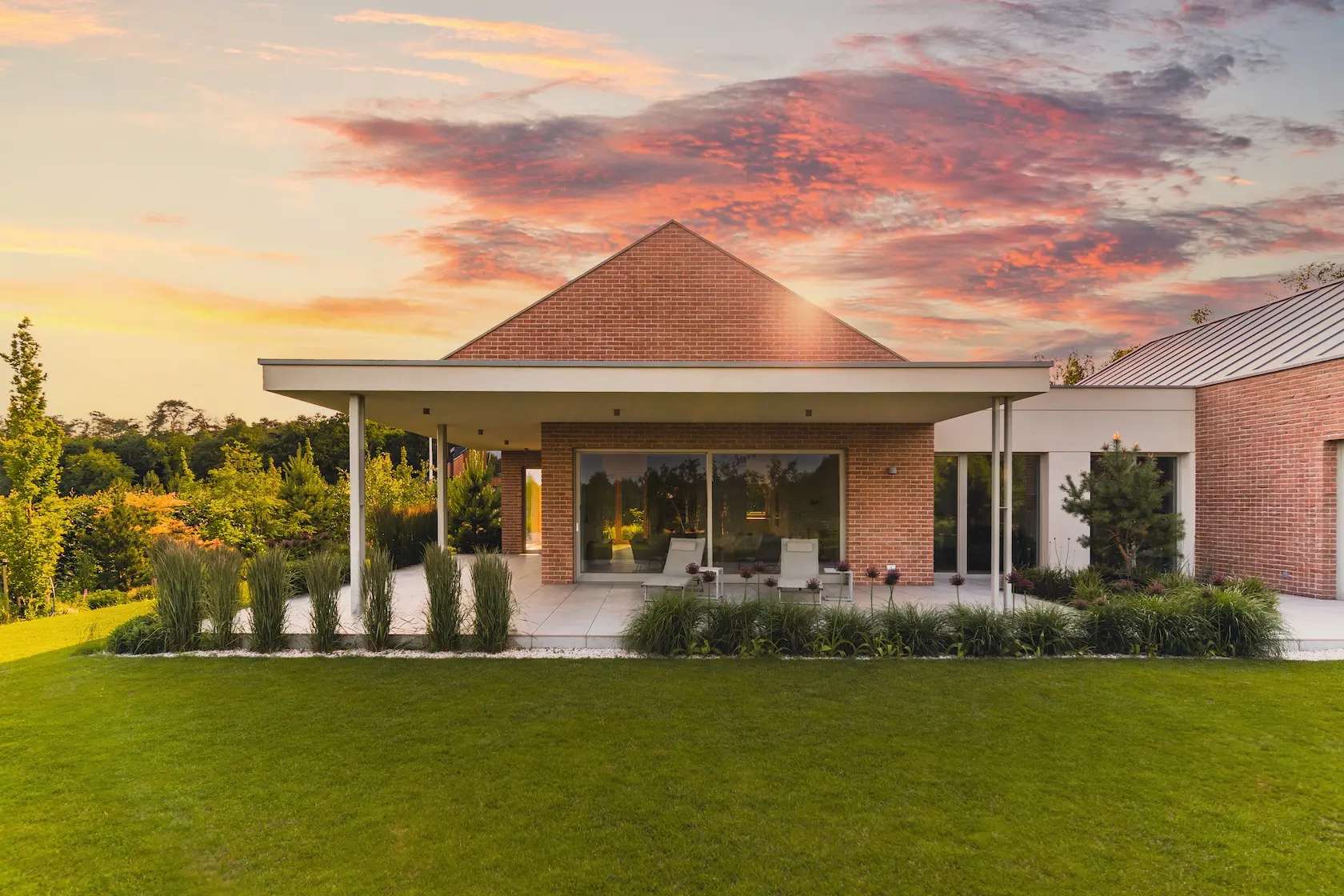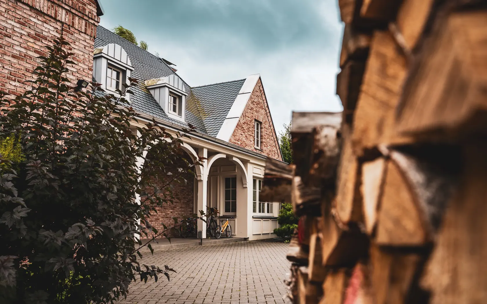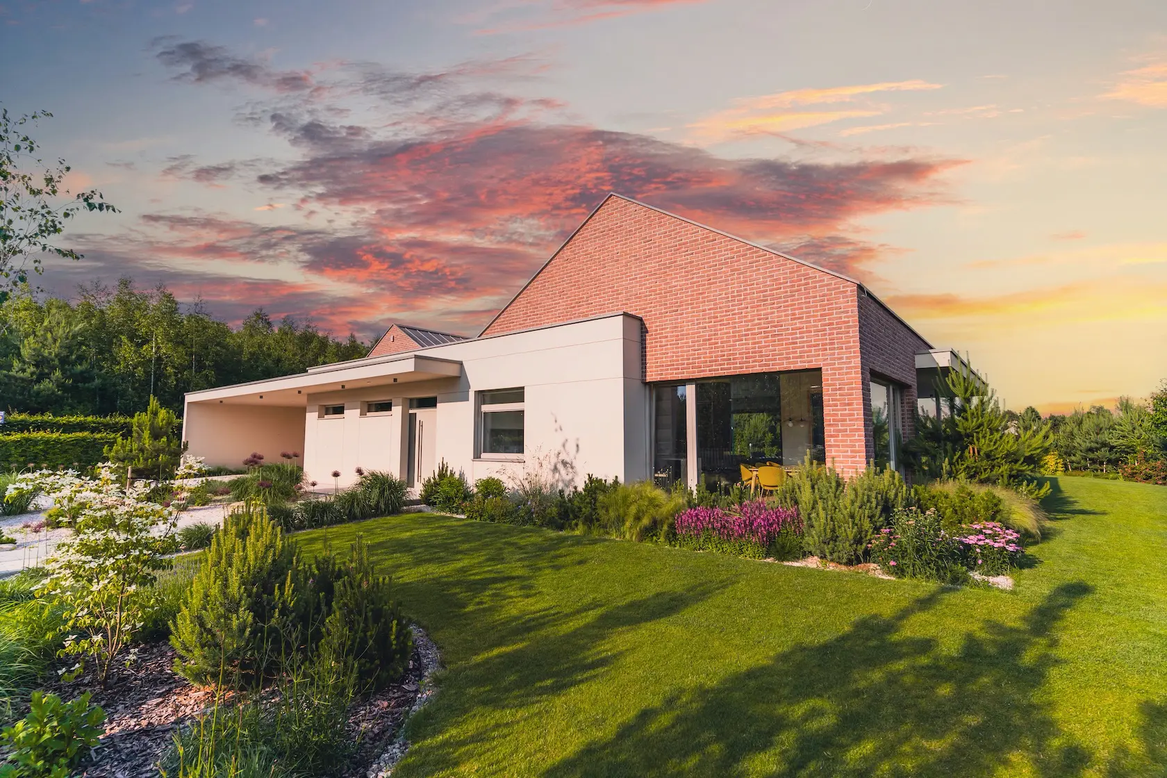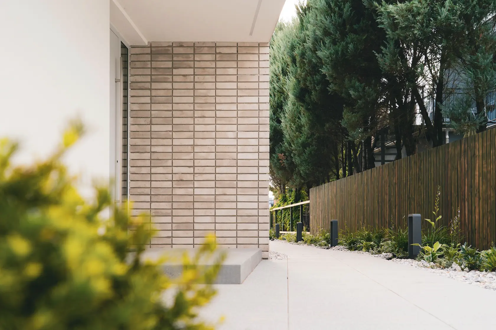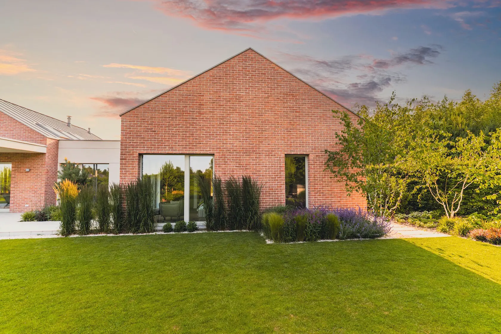 cegła prestiżowa: wybrane płaszczyzny wykończono cegłą licową ręcznie formowaną Milke, cenioną za unikalny, nieregularny charakter, trwałość i luksusowy wygląd, który nadaje elewacji tradycyjnego, a zarazem wyrafinowanego stylu.