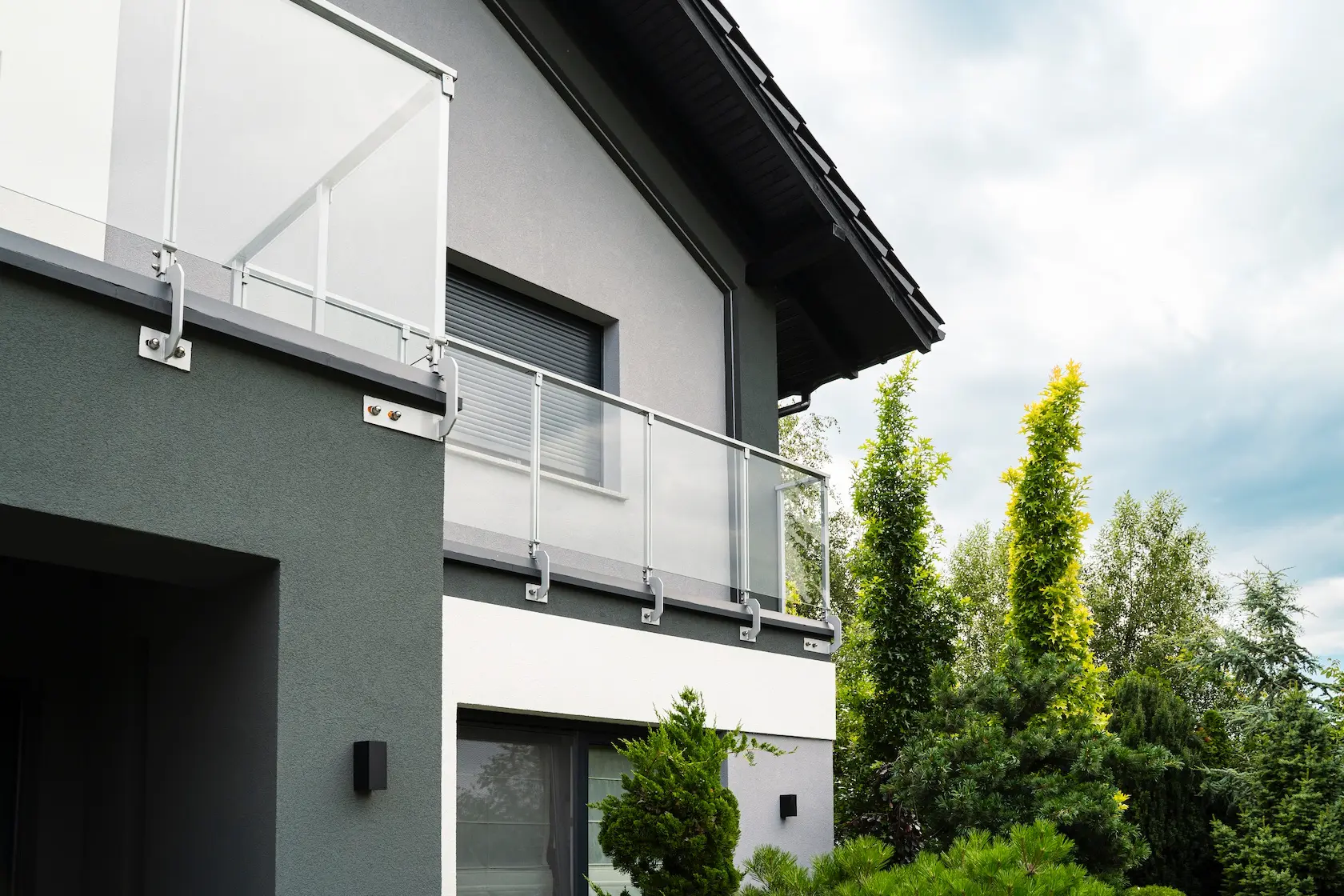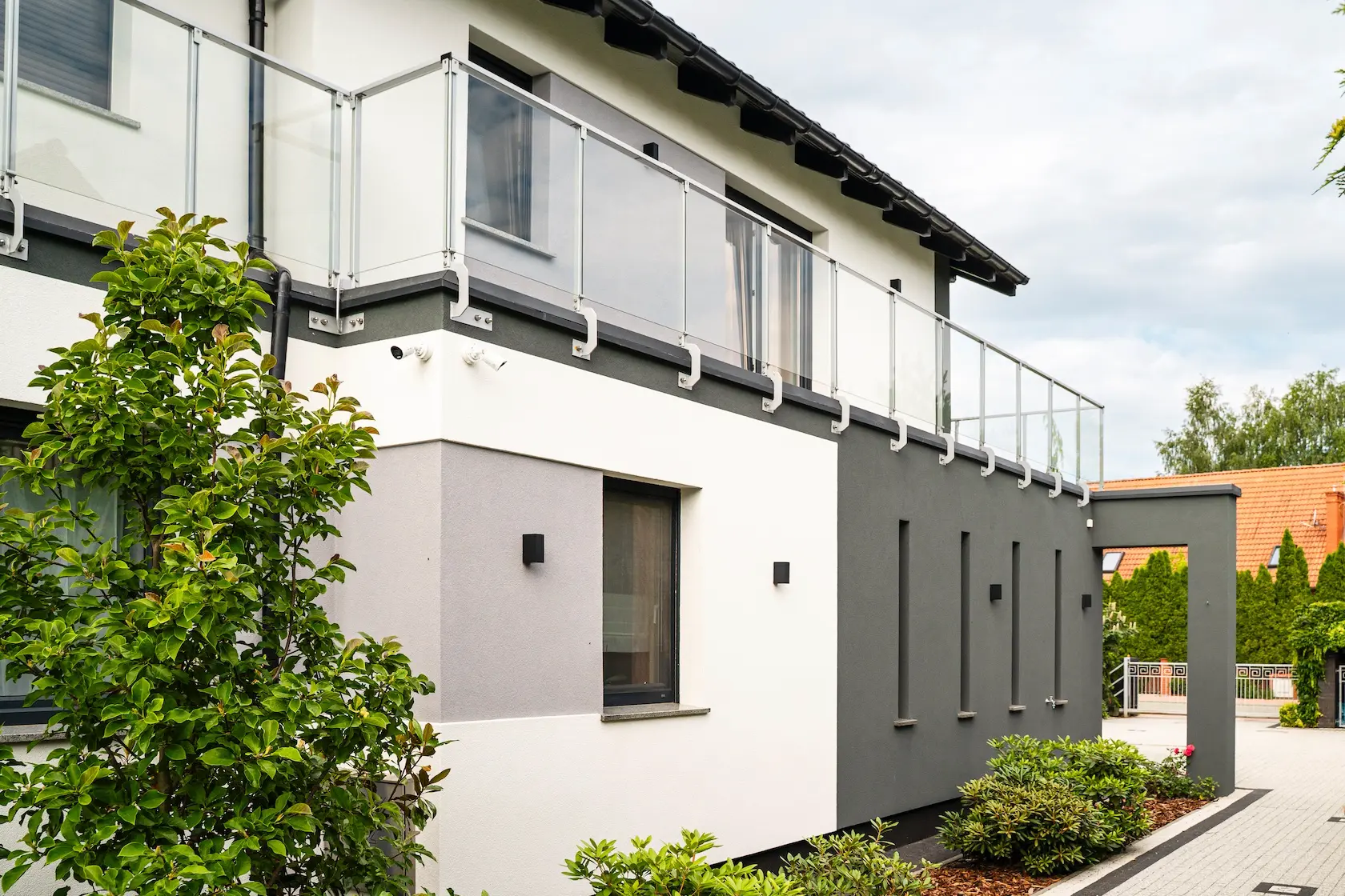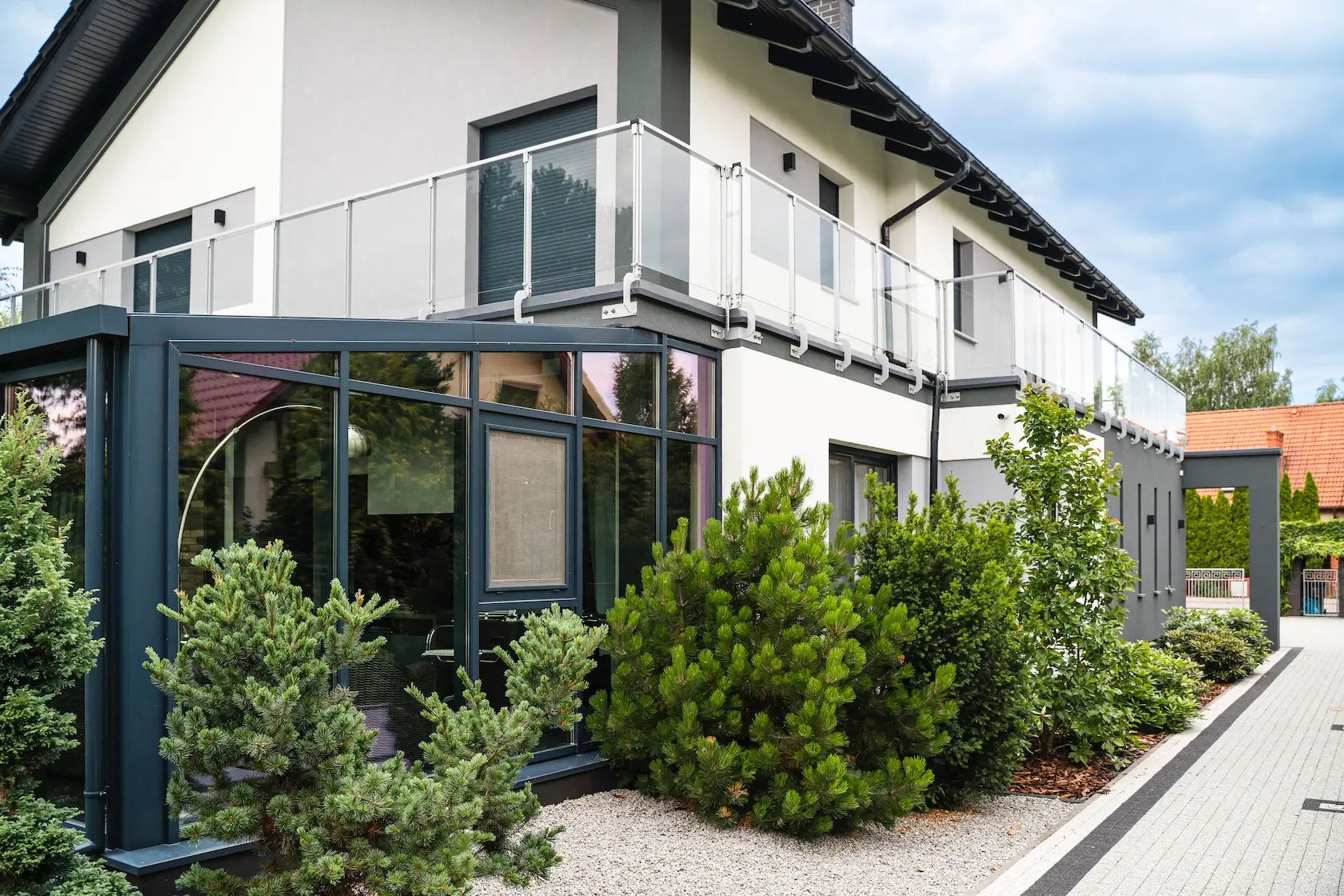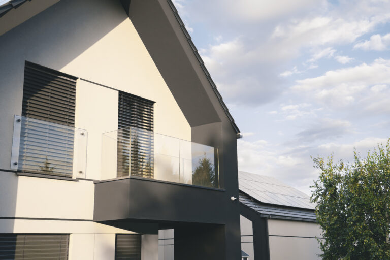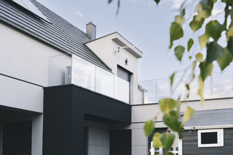 parapety: wybrano parapety aluminiowe, które są lekkie, trwałe i stanowią nowoczesne, minimalistyczne wykończenie.
