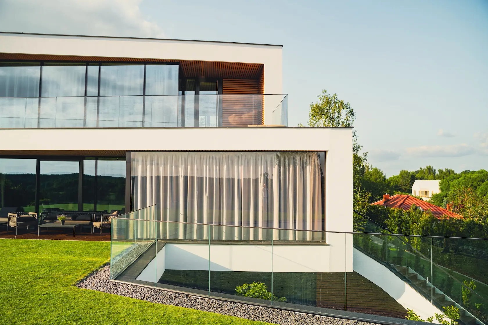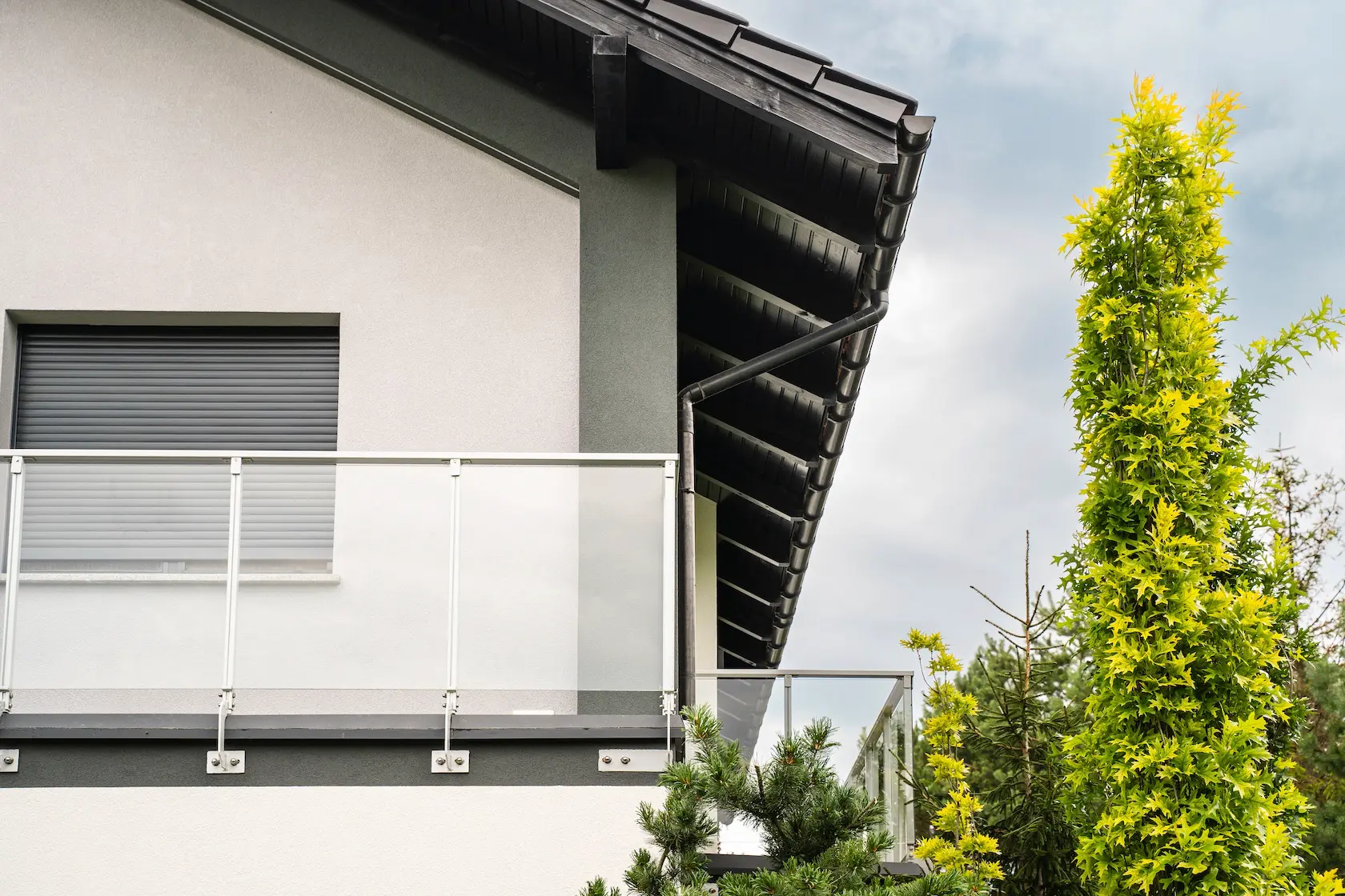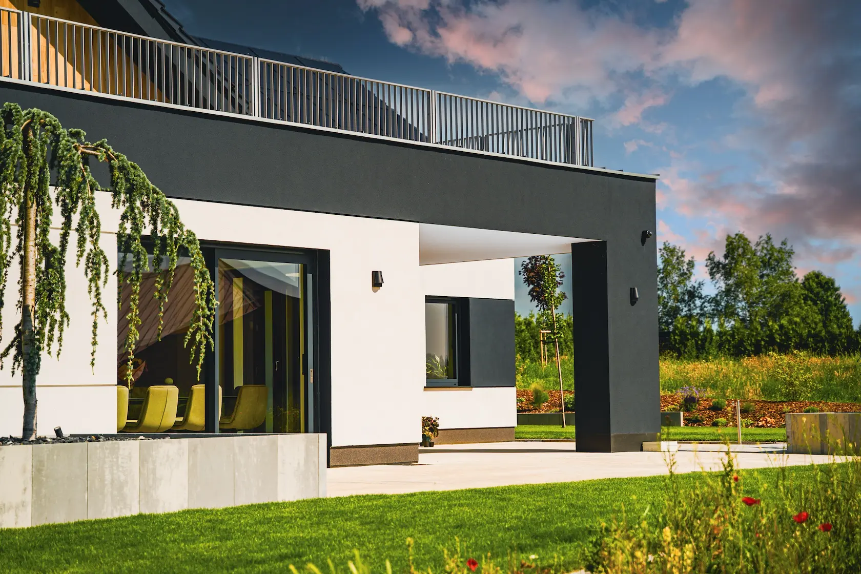 parapety: wybrano parapety aluminiowe, które są lekkie, trwałe i stanowią nowoczesne, minimalistyczne wykończenie.