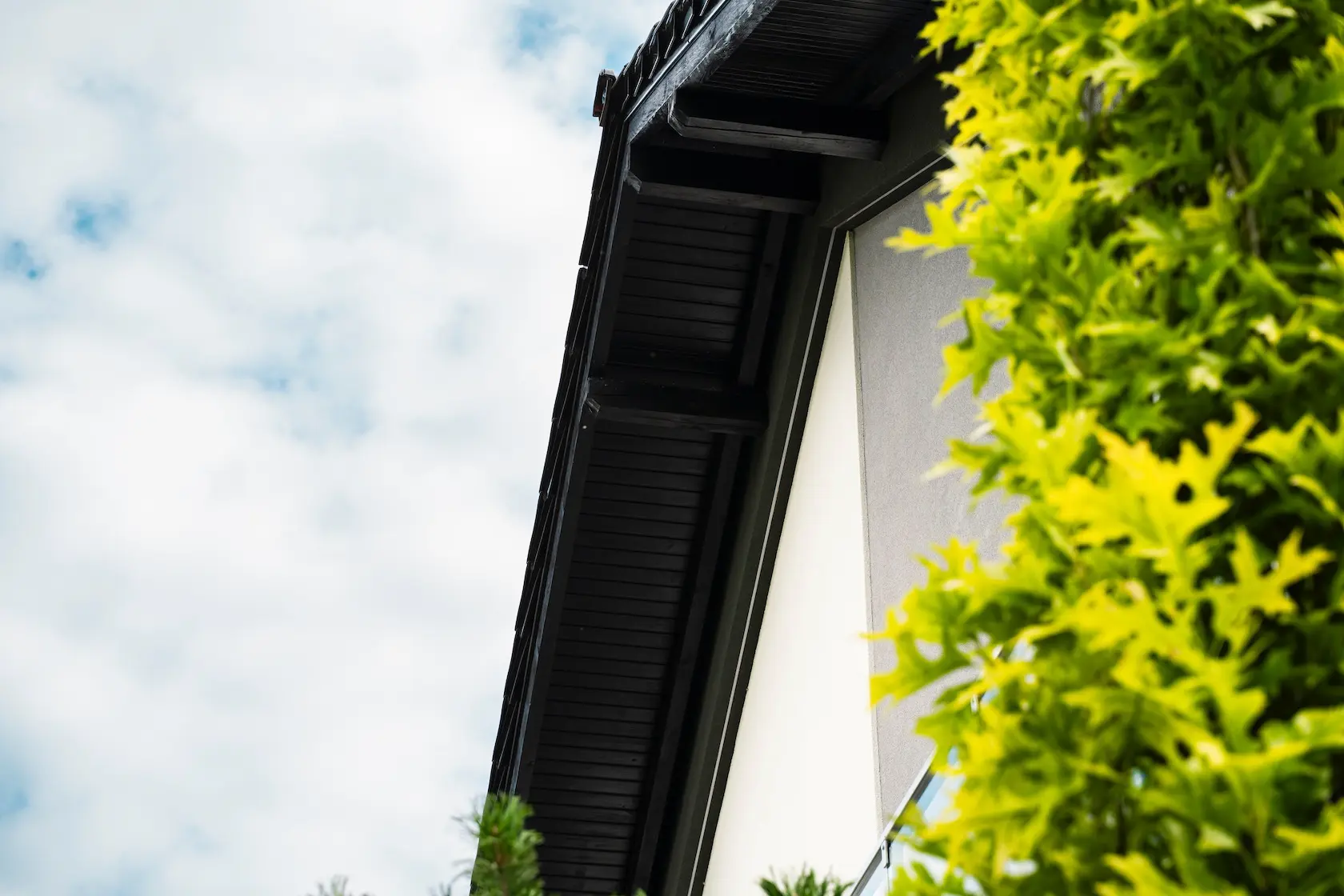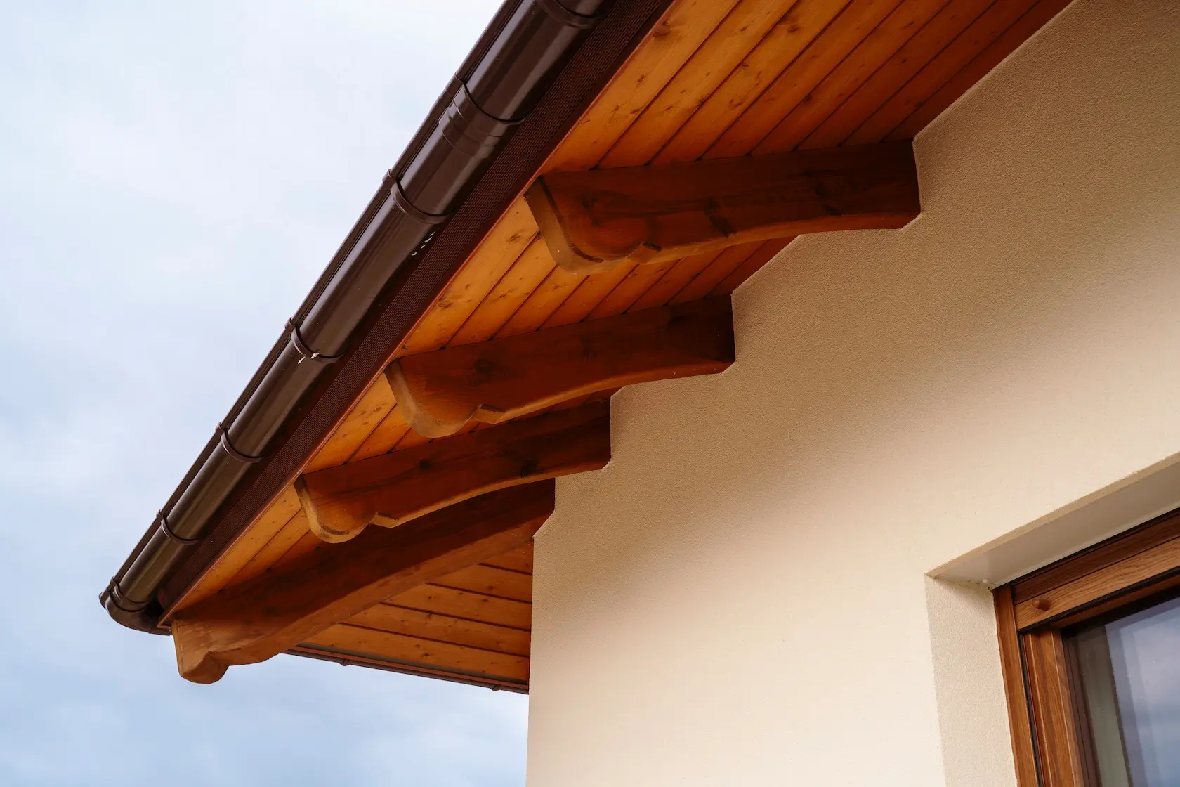 wykończenie okapu: zastosowanie spójnej konstrukcyjnie podbitki dachowej na płycie OSB, która została obłożona.