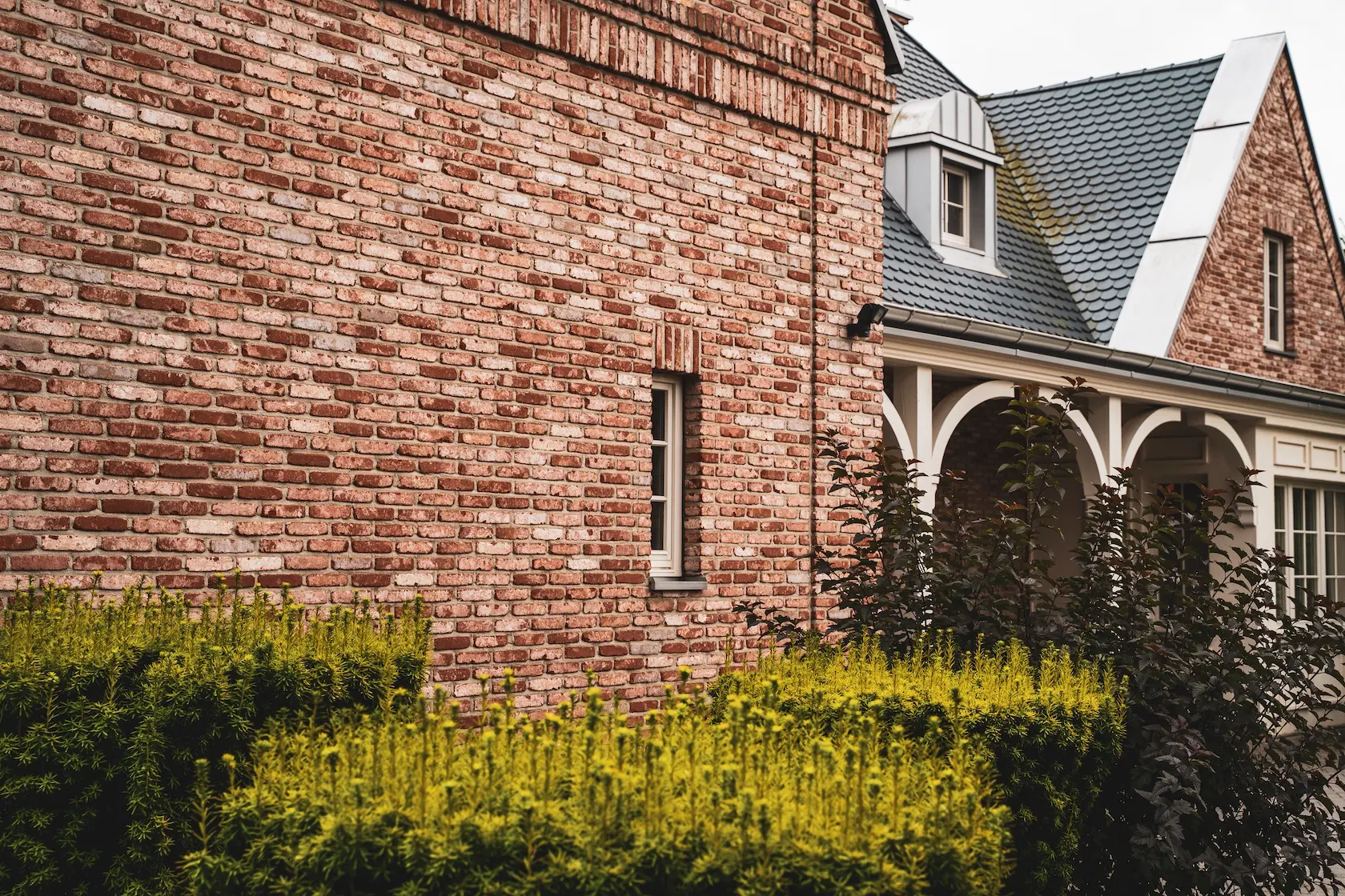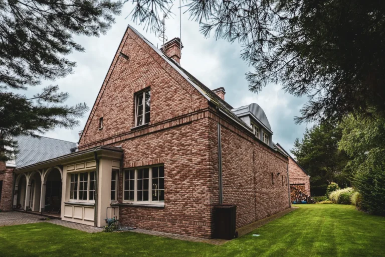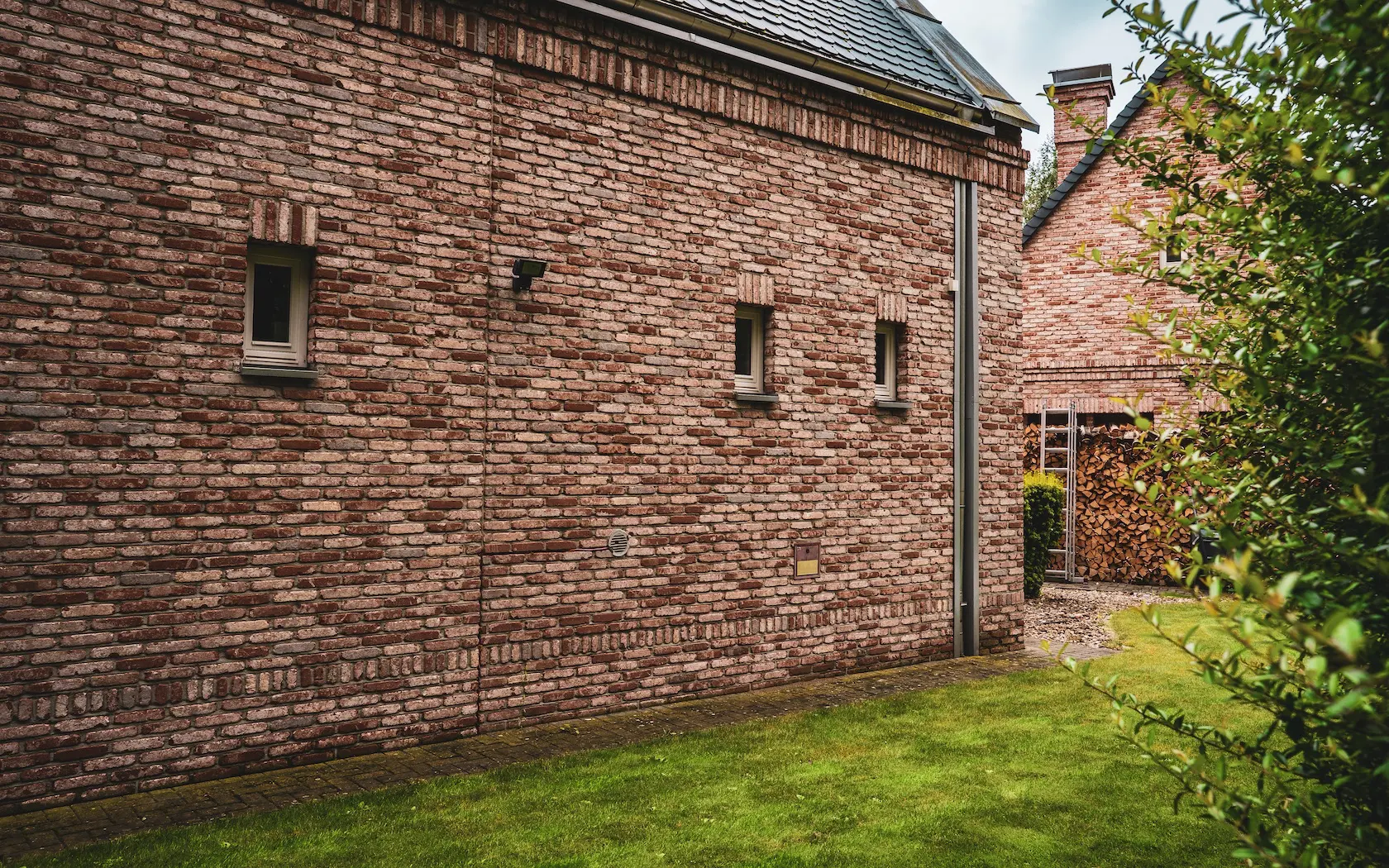 spójność wykończenia: parapety zostały wykonane z tej samej cegły ręcznie formowanej Vandersanden, co zapewnia pełną spójność wizualną i trwałość detali okiennych,