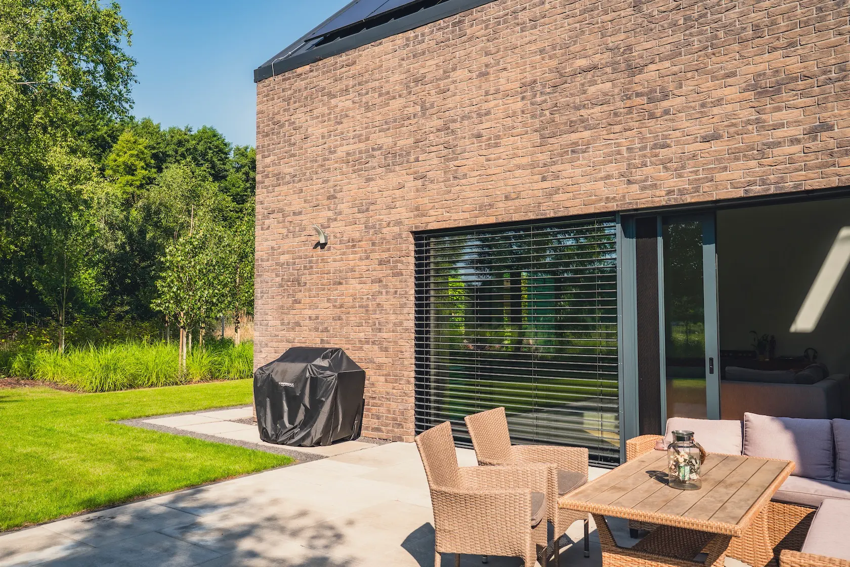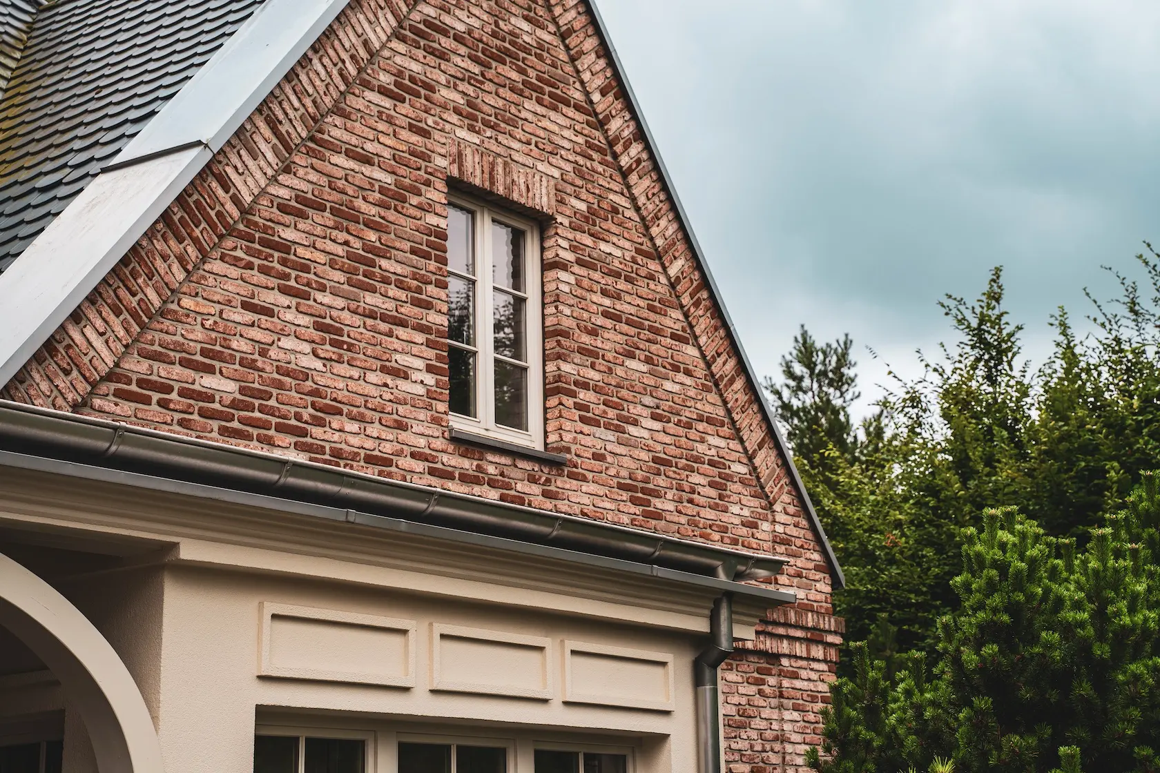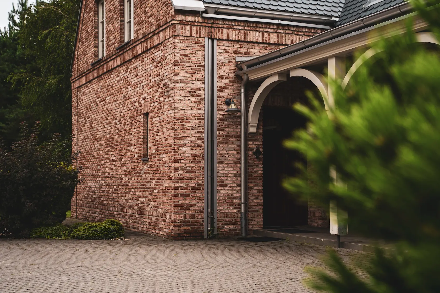 spójność wykończenia: parapety zostały wykonane z tej samej cegły ręcznie formowanej Vandersanden, co zapewnia pełną spójność wizualną i trwałość detali okiennych,