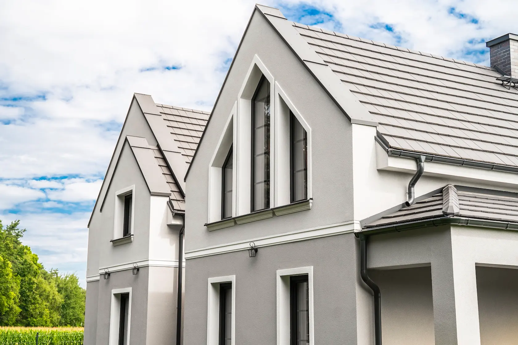 akcent klasyczny (sztukateria): elewację wzbogacono o sztukaterię elewacyjną ST Dekor. Elementy te pozwalają na stworzenie bardziej klasycznego lub reprezentacyjnego charakteru budynku, podkreślając architektoniczne detale,