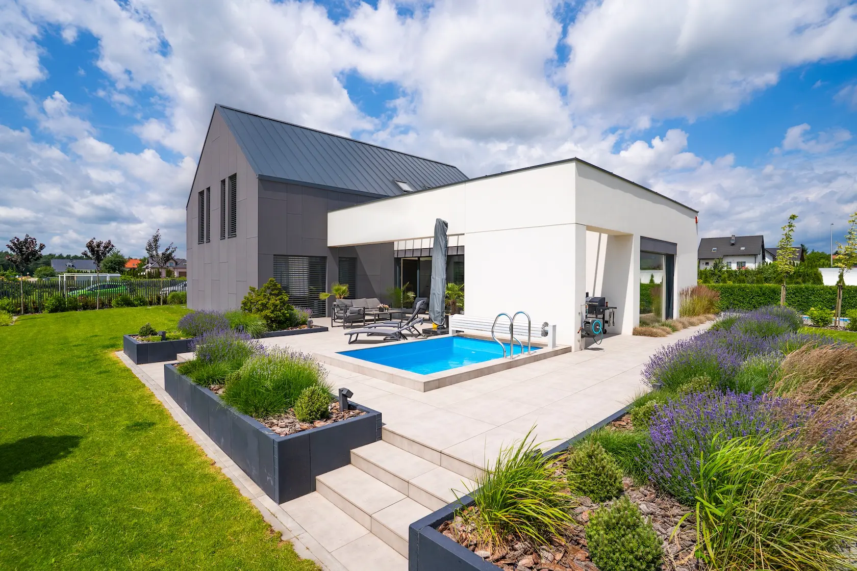 - tynk premium: użycie strukturalnych tynków mikrosilikonowych premium gwarantuje maksymalną odporność na warunki atmosferyczne, zabrudzenia i promieniowanie UV, oferując estetykę na najwyższym poziomie,