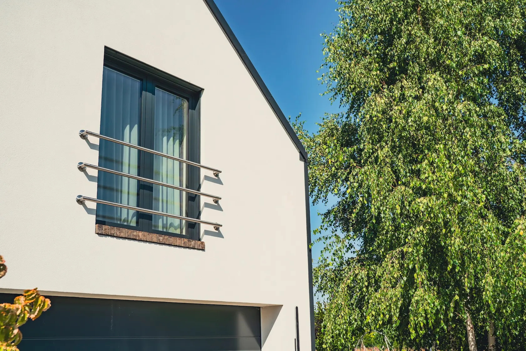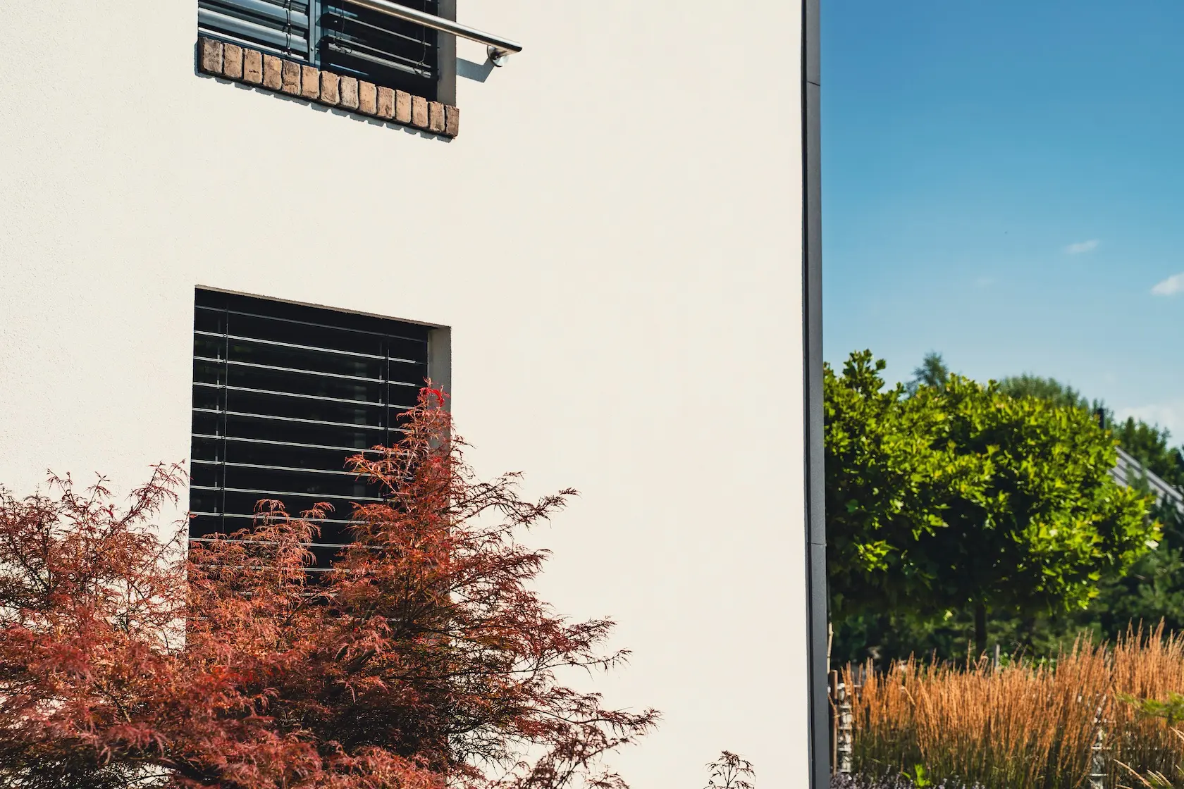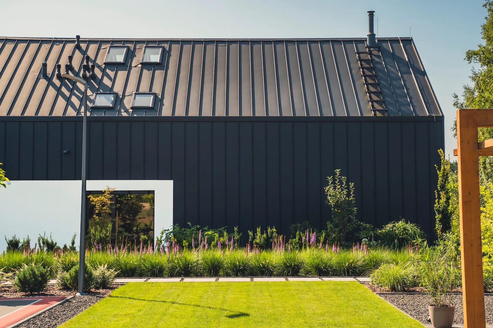 Wybrano parapety stalowe, które są trwałe i stanowią proste, funkcjonalne wykończenie.