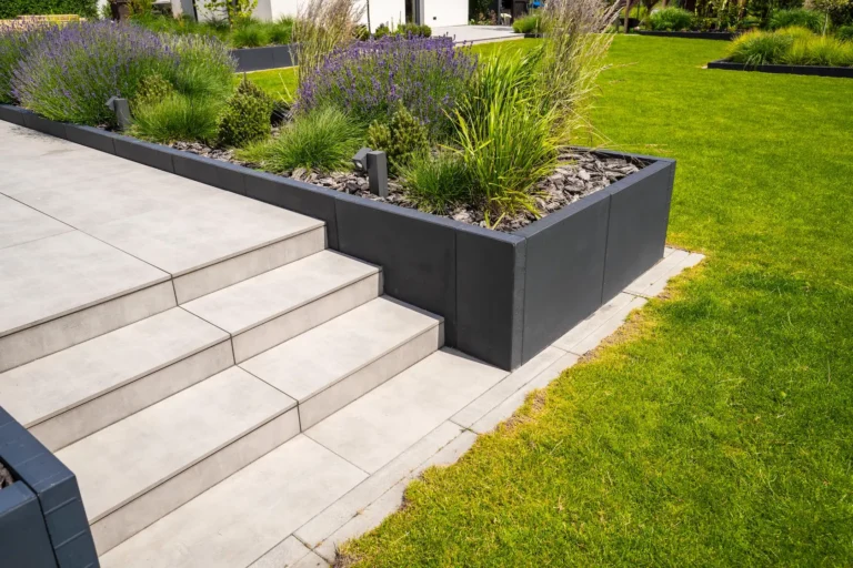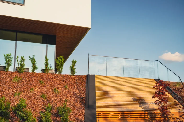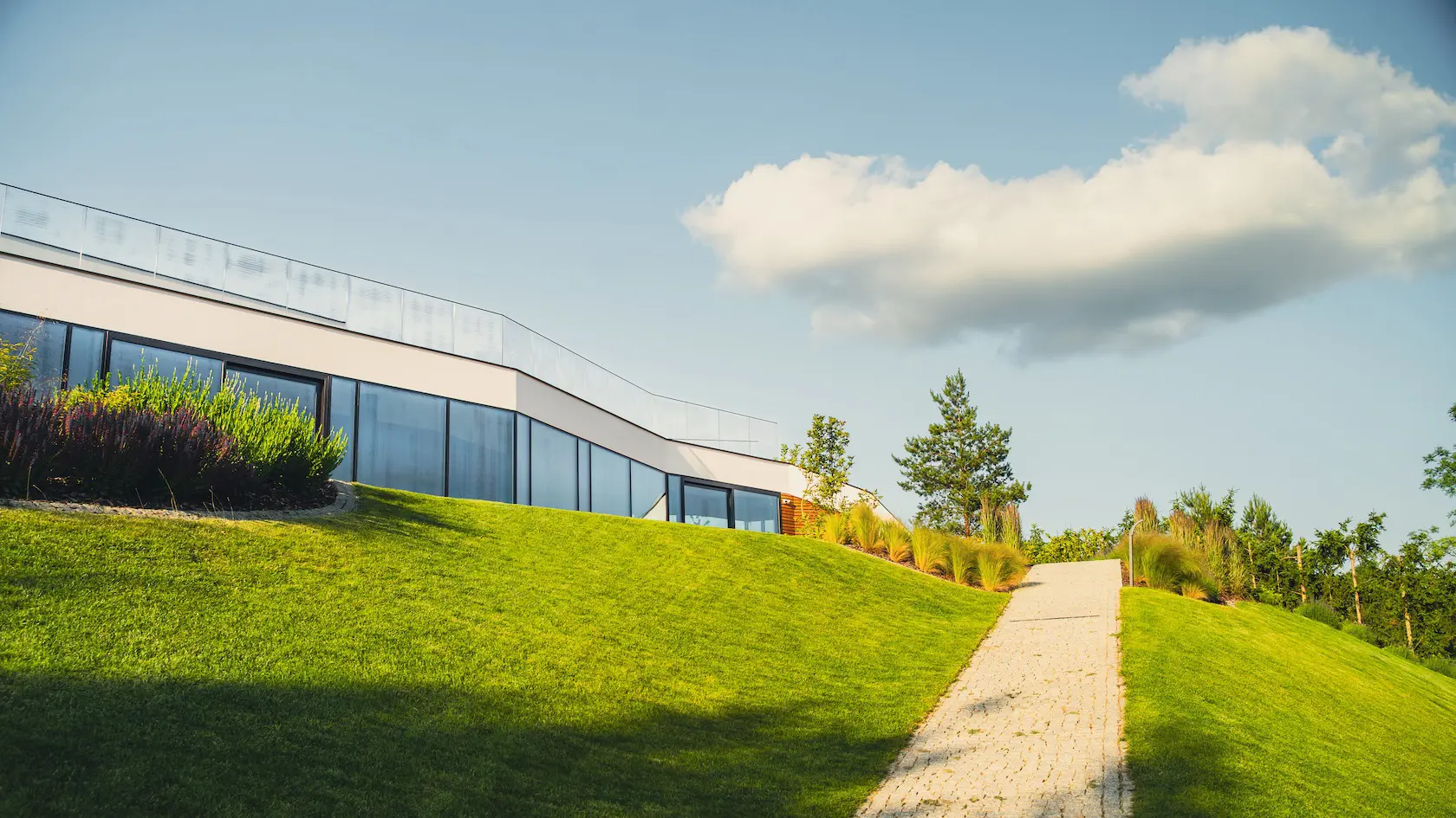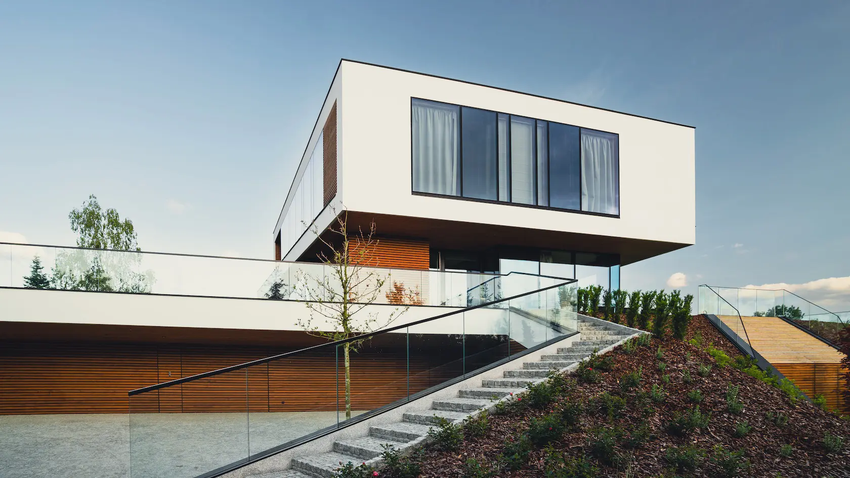 Wybrano parapety stalowe, które są trwałe i stanowią proste, funkcjonalne wykończenie.