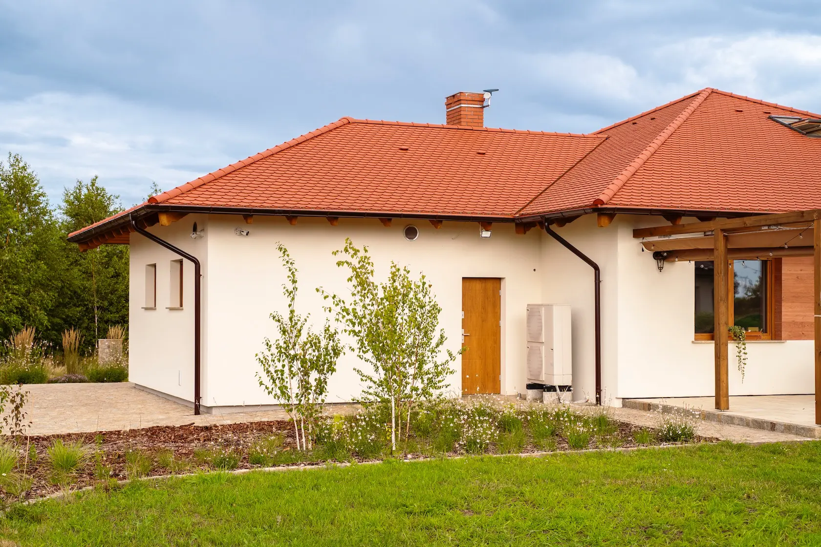 płytka klinkierowa: wybrane płaszczyzny elewacji wykończono płytką klinkierową King Klinkier. Materiał ten zapewnia trwałość, odporność na zabrudzenia i mróz, a także nadaje budynkowi klasyczny, solidny charakter,