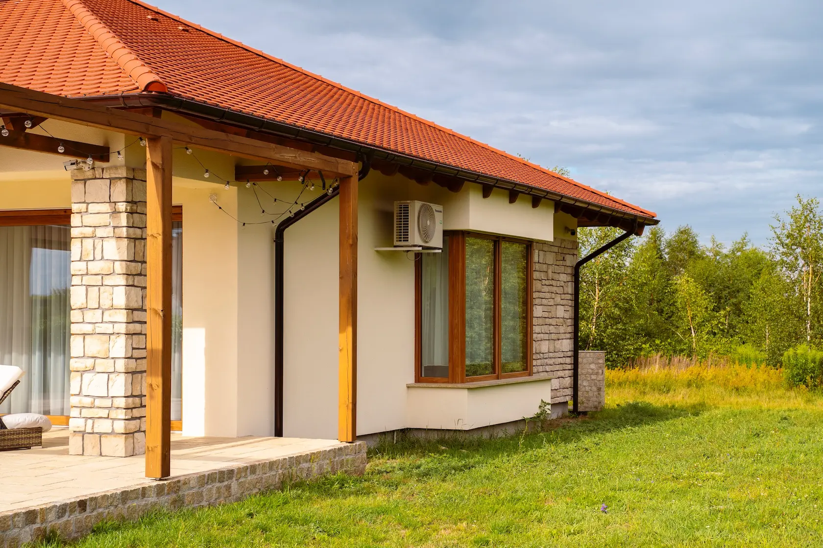 okiennice drewniane – nadają budynkowi ciepłego, tradycyjnego charakteru i stanowią funkcjonalny element dekoracyjny,