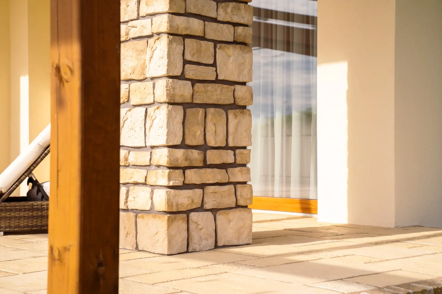 kamień dekoracyjny: jako uzupełnienie użyto kamienia elewacyjnego keramzytowo-cementowego Stone Master Portina Sahara, wprowadzającego dodatkową, naturalną fakturę i solidność.