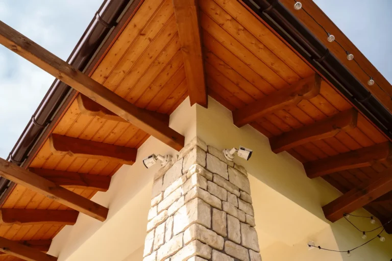 podbitka sufitowa na konstrukcji z płytą OSB obłożona styropianem z tynkiem zapewnia estetyczne zamknięcie okapu,