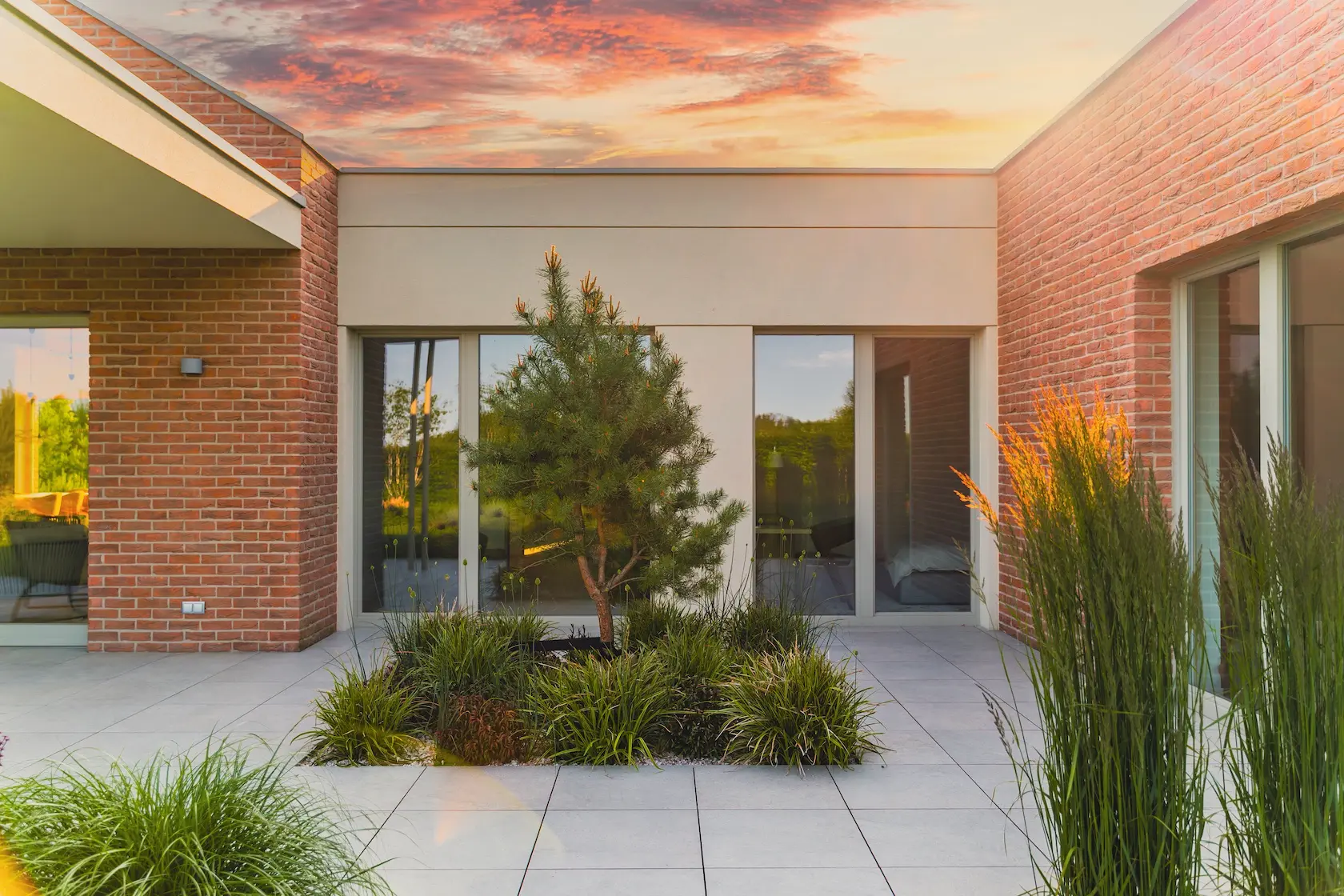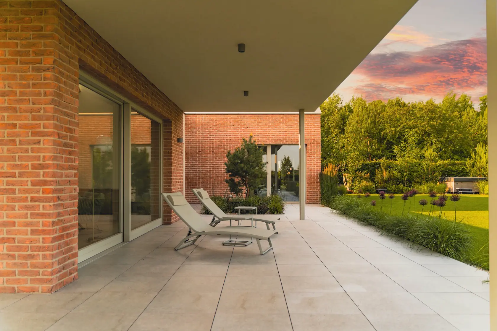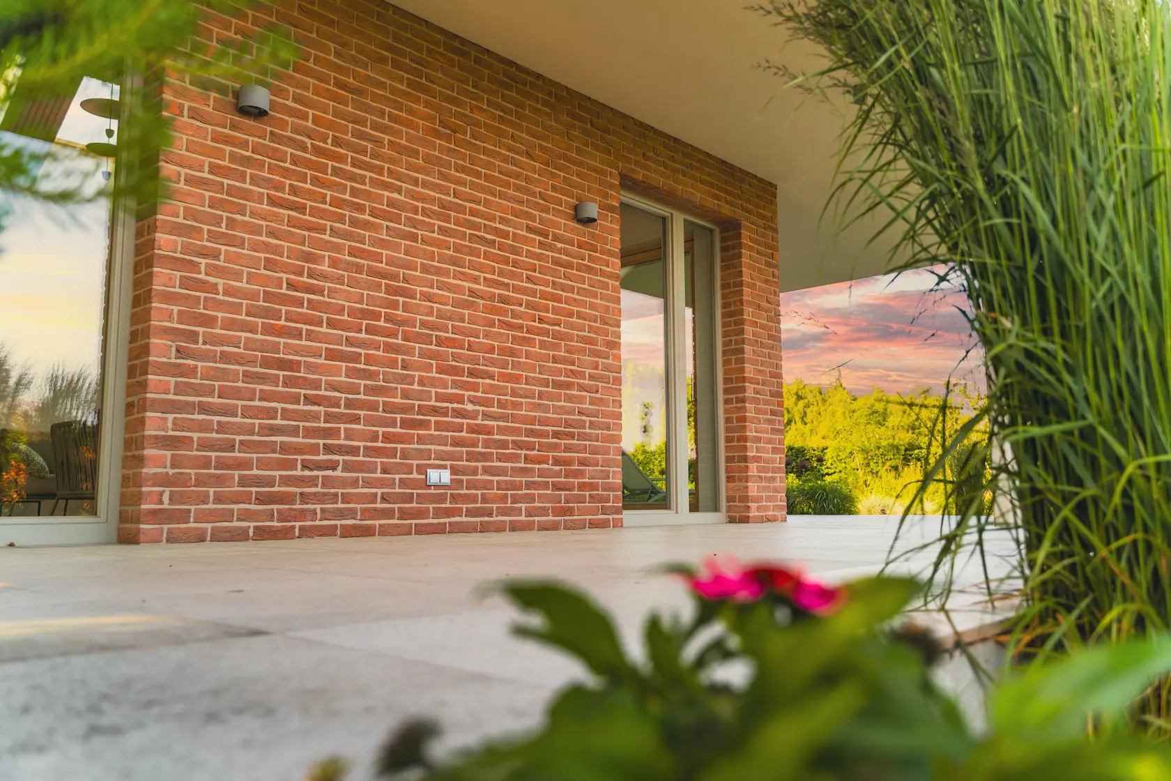 - parapety: wybrano parapety betonowe, które idealnie harmonizują z industrialnym lub klasycznym charakterem cegły.