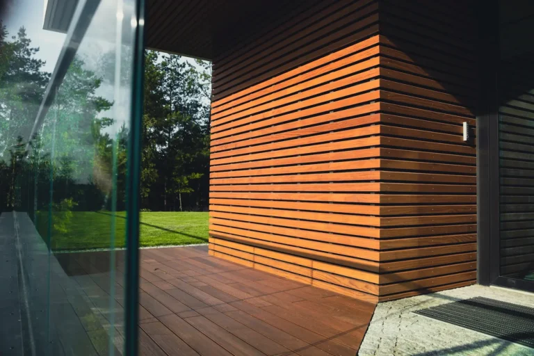 spójność wizualna: to samo drewno termo sosna bezsęczna Thermory zastosowano na: