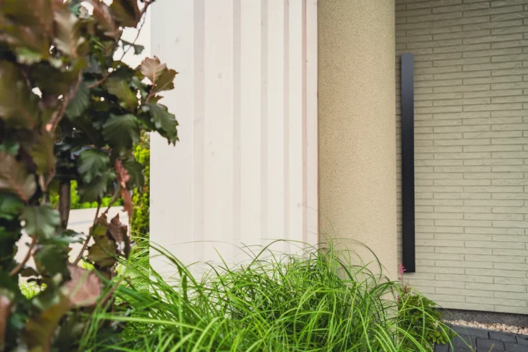 wykończenie tynkarskie: użycie strukturalnych tynków silikonowych gwarantuje wysoką odporność na czynniki atmosferyczne, elastyczność i trwałość koloru.