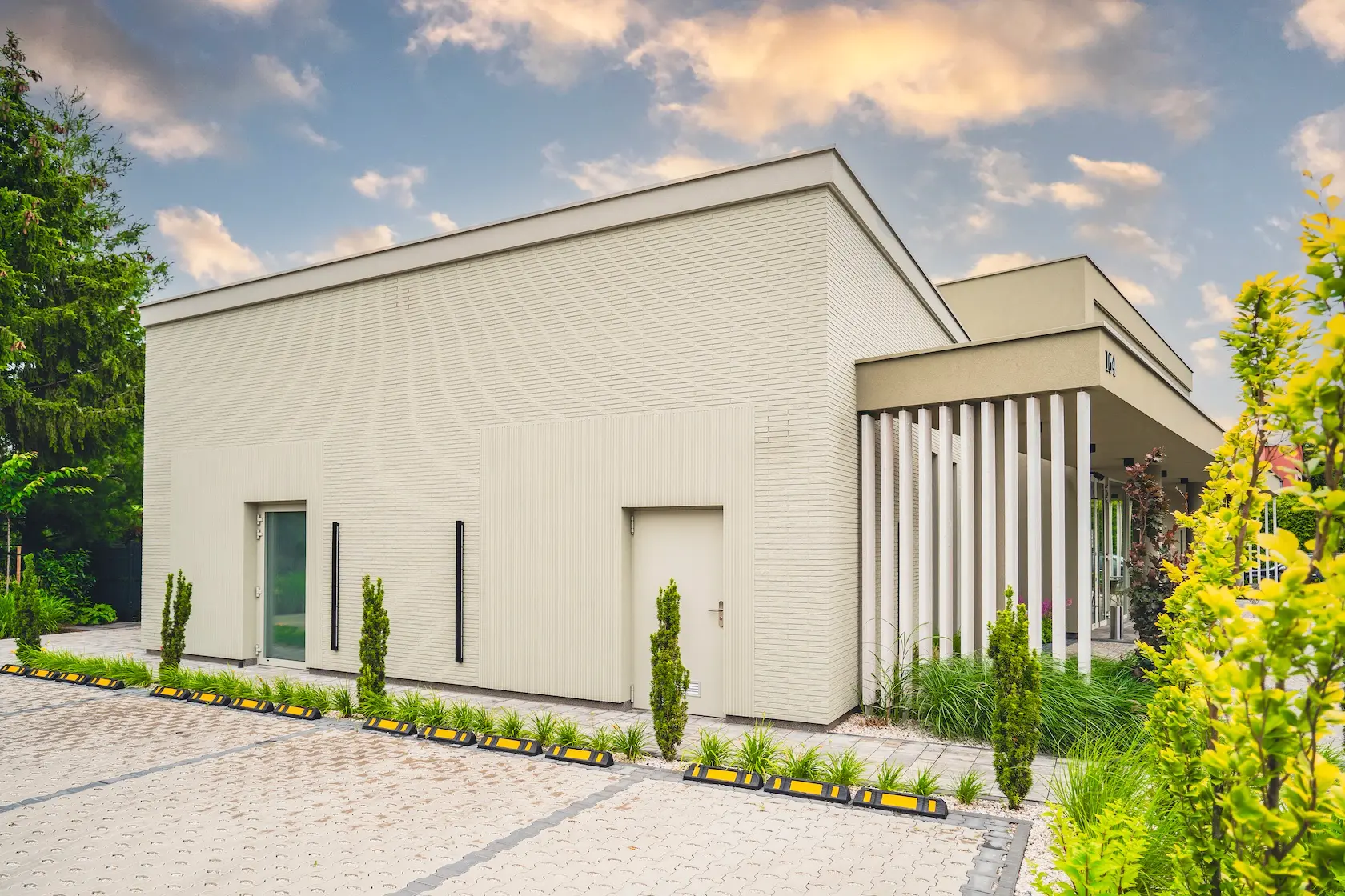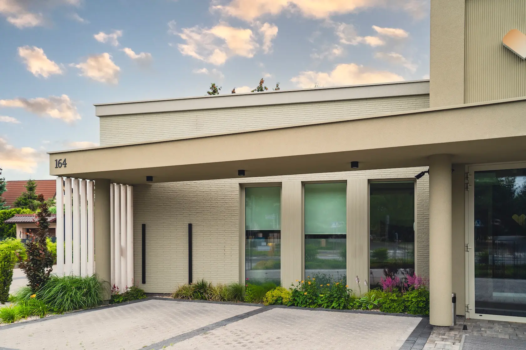 tynk innowacyjny: zastosowanie strukturalnych tynków mikrosilikonowych „LOTUSAN” (znanych z tzw. efektu lotosu) zapewnia fenomenalną zdolność do samoczyszczenia, minimalizując konieczność konserwacji i chroniąc elewację przed zanieczyszczeniami,