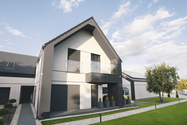 - Panele 3D “sztruks” Bolix – unikalna struktura nadająca elewacji głębi i trójwymiarowego efektu.