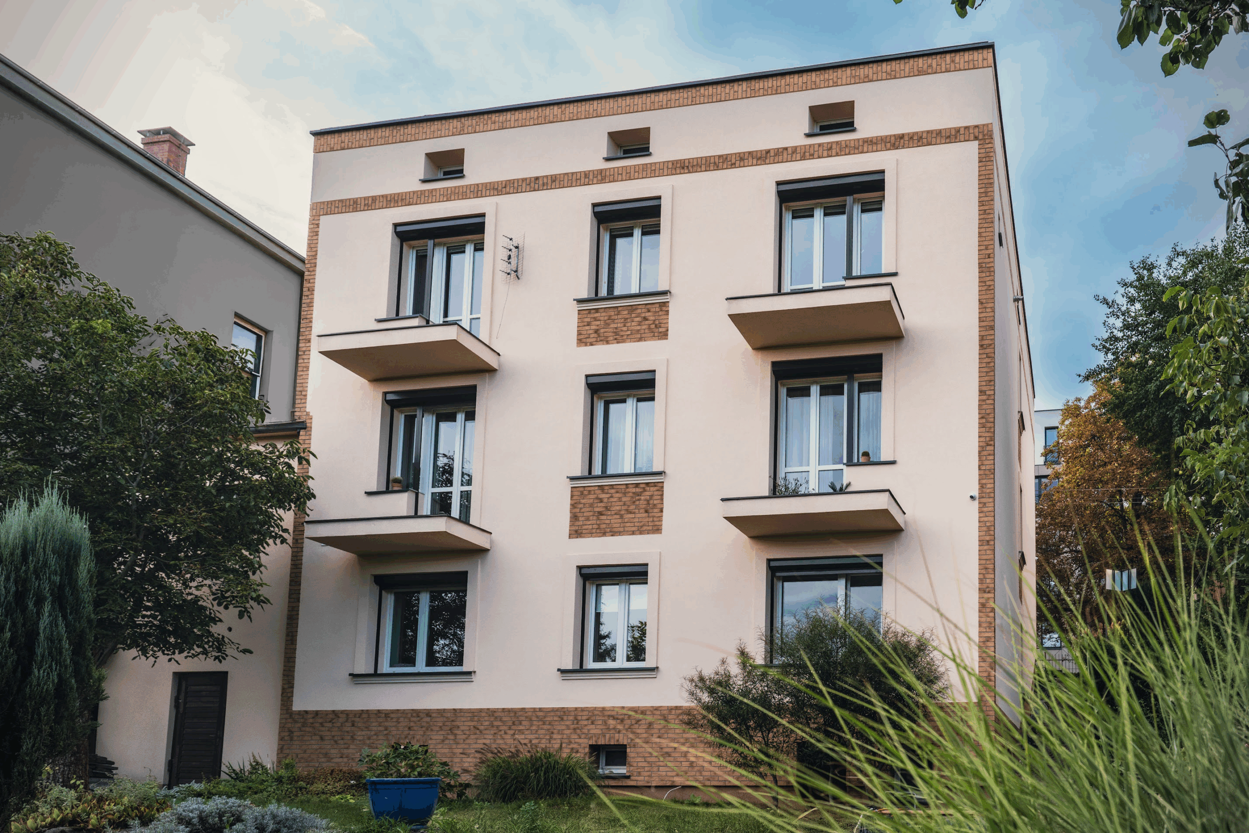 - detale architektoniczne: listwy do boniowania podkreślają geometrię fasady i dodają jej eleganckiego, uporządkowanego charakteru,