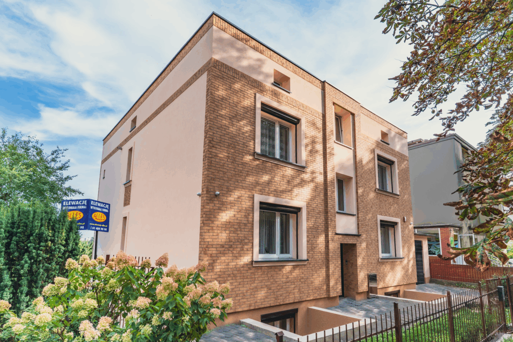 Elewacja Premium w Systemie ETICS: Ręcznie Formowana Cegła i Mikrosilikon